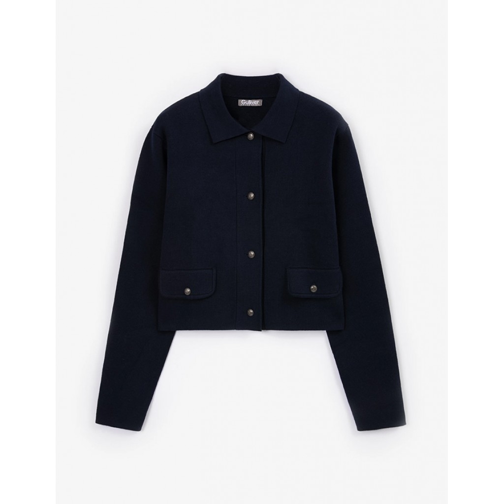 Синий вязаный жакет - образец элегантности, лаконичности, культуры в подаче образа. Строгий стильный дизайн и выверенная форма, отсылающие к легендарной модели Коко Шанель, сделали его идеальной составляющей красивого и комфортного гардероба в деловом стиле. Благодаря высокой плотности жакет, связанный двойным комбинированным переплетением, обладает хорошей формоустойчивостью, не вытягивается, не мнется, сохраняет первозданный вид долгое время. Модель застегивается на металлические пуговицы с элегантной гравировкой. Ложные клапаны играют важную декоративную роль, делают модель завершенной. Жакет не имеет карманов.