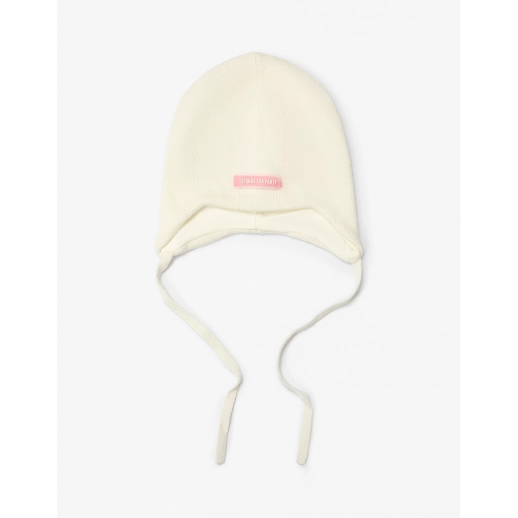 Вязаная шапка благородного молочного цвета на хлопковой трикотажной подкладке — универсальный головной убор, способный гармонично дополнить любой осенне-зимний образ малышки. Форма модели с вывязанными ушками с завязками плотно фиксирует шапку на голове девочки, не оставляя ветру ни единого шанса. Состав пряжи с содержанием шерсти мериноса и ангорской шерсти делает ее мягкой, тёплой, пушистой. Серебристая люрексовая нить, входящая в состав пряжи, наделяет шапку легким деликатным блеском. В оформлении модели использована небольшая брендированная нашивка.