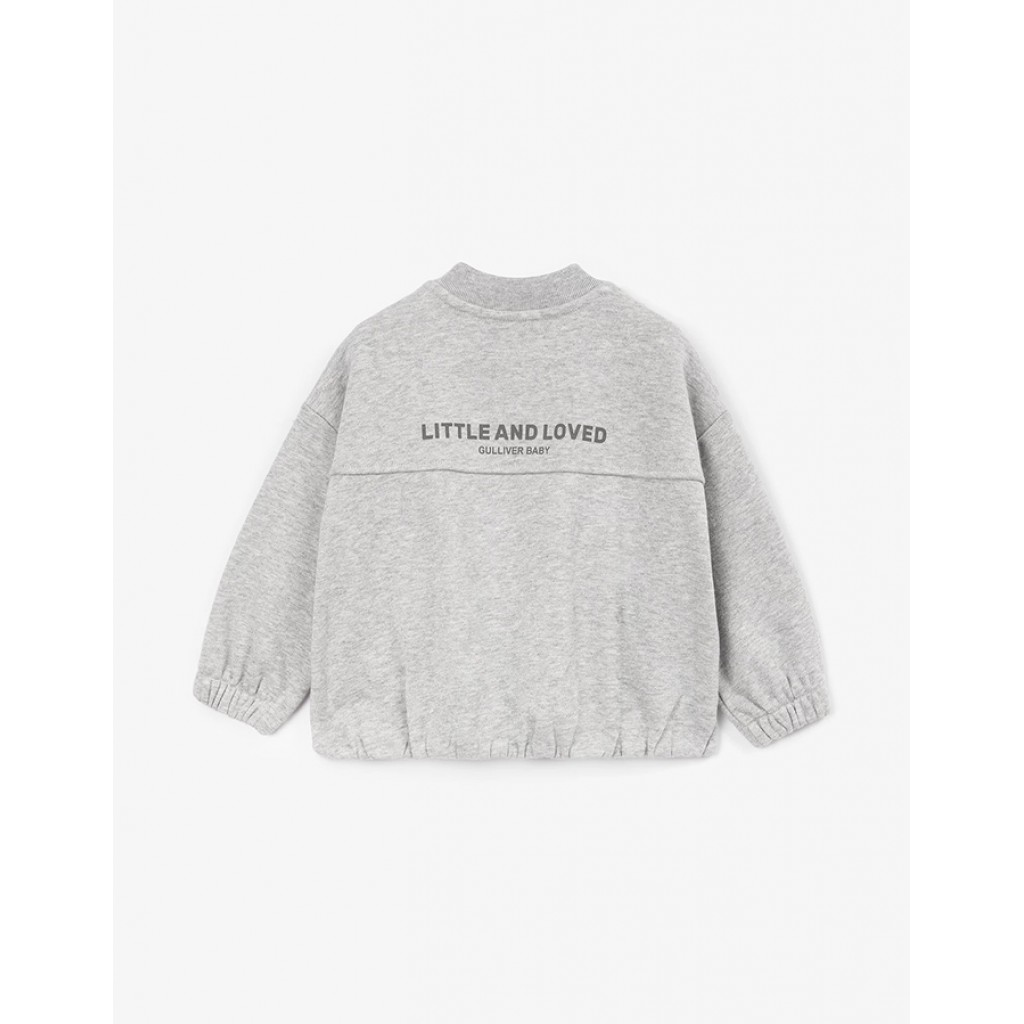 Серая распашная толстовка сделает осенний гардероб девочки стильным и функциональным! Она выполнена из хлопкового френч-терри с добавлением сияющих нитей люрекса. Благодаря легкой присборенности по низу изделия, толстовка имеет модную баллонообразную форму, придающую каждому образу малышки нежность и женственность. В оформлении модели использованы лакончиный шрифтовой принт, брендированная нашивка. Толстовка застегивается на серебристую пластиковую молнию, имеет мягкий трикотажный воротник-полустойку, удобные карманы-листочки.