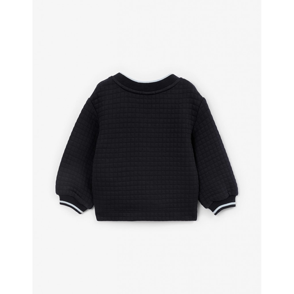 Синяя распашная толстовка сделает осенний гардероб мальчика стильным и функциональным! Элегантная форма с V- образной горловиной и застежкой на пуговицы придает толстовке вид уютного кардигана - незаменимого атрибута нарядных образов маленького стиляги. Комфортное трикотажное полотно "капитоний", имеющее мелкую стеганую текстуру, делает кардиган очень мягким, теплым, приятным тактильно. Контрастные канты по краю изделия и рукавам наделяют модель динамикой спортивного стиля. Кардиган имеет удобные карманы-листочки.