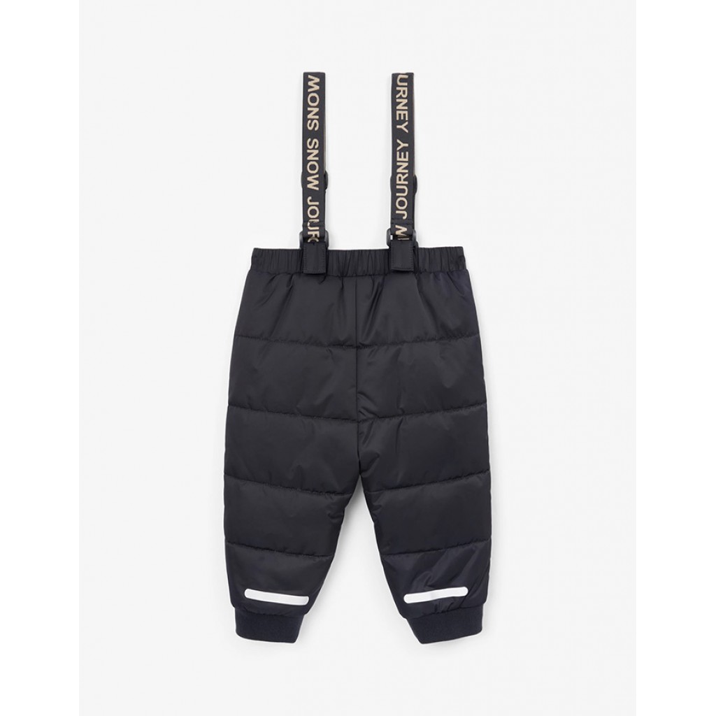Утеплённые синие брюки, выполненные из влагостойкой плащовки, - прекрасный вариант для прохладного межсезонья! Манжеты, пояс на резинке, регулируемые отстёгивающиеся бретели, трикотажная подкладка наделяют брюки важным функционалом для комфортной эксплуатации. В оформлении модели использованы светоотражающие элементы, способствующие безопасности ребенка в тёмное время суток..