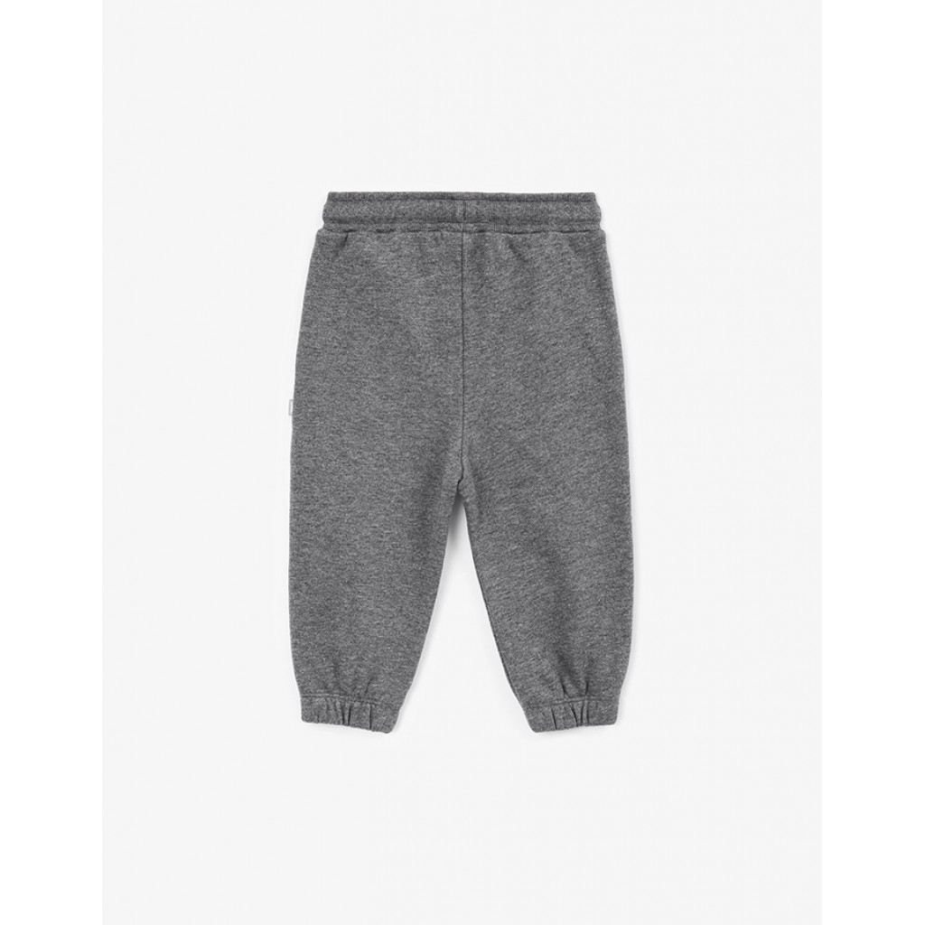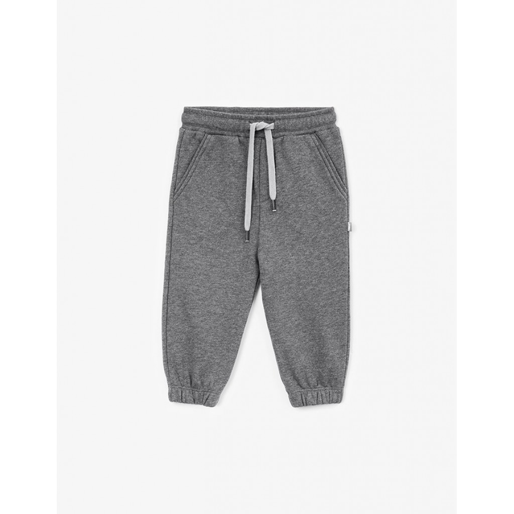 Серые трикотажные брюки-джоггеры созданы для комфортных прогулок в межсезонье. Мягкий, пластичный и дышащий френч-терри обеспечивает свободу движений. Пояс на резинке с кордами гарантирует простоту в эксплуатации. Брюки имеют два боковых кармана со скосами.
