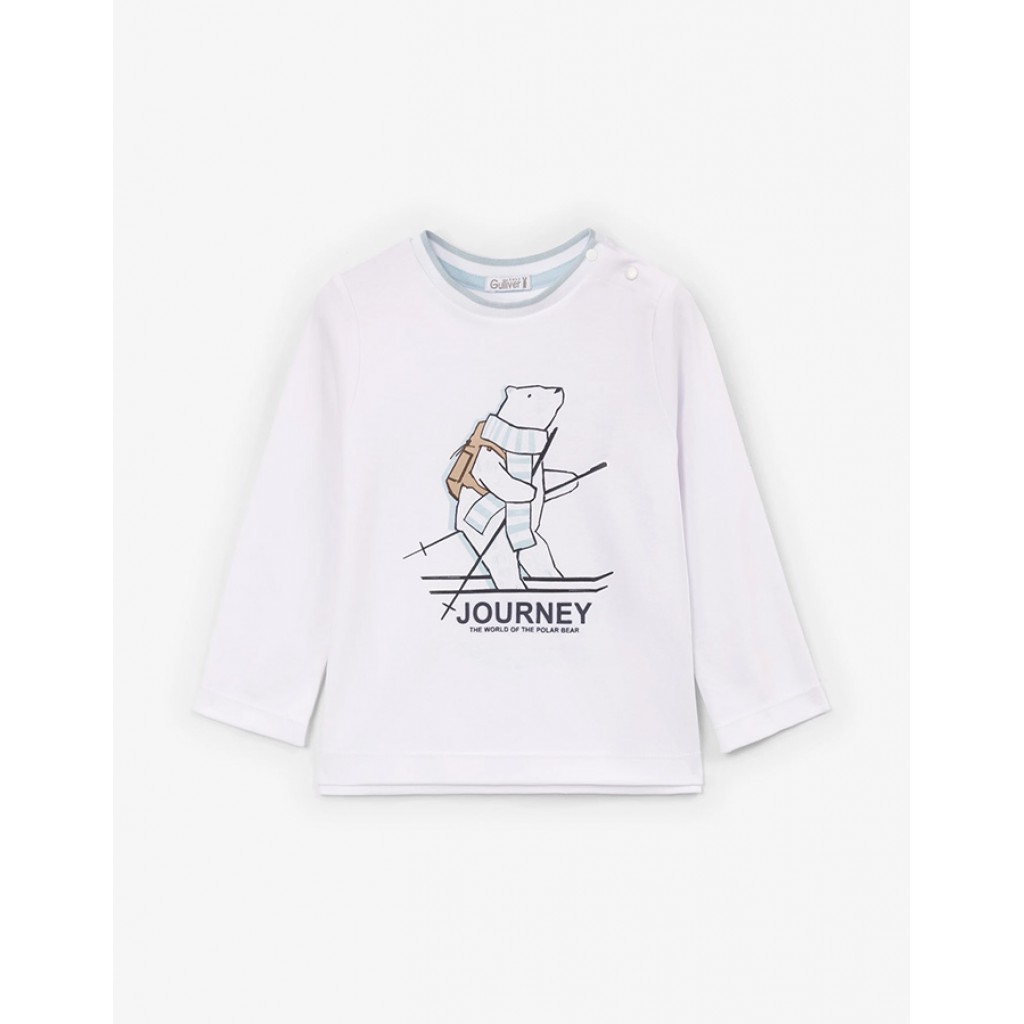 Белый лонгслив, выполненный из мягкого хлопкового интерлока, - прекрасный вариант и для домашнего времяпрепровождения, и для образов на выход. Пластичный дышащий трикотаж обеспечит комфорт и свободу движений. Оригинальный декор с полярным мишкой на передней части понравится юным ценителям стильной интересной графики. Застежка на кнопках в плечевом шве облегчит процесс переодевания, сделав лонгслив самым комфортным атрибутом гардероба маленького стиляги.