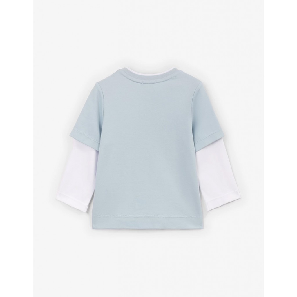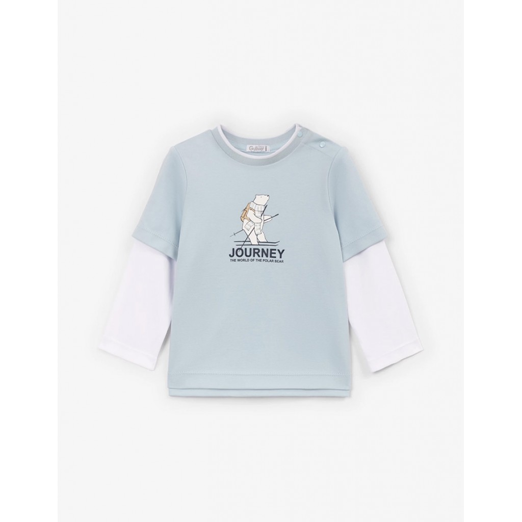 Двухцветный лонгслив с имитацией многослойности, выполненный из мягкого хлопкового интерлока, - прекрасный вариант и для домашнего времяпрепровождения, и для образов на выход. Пластичный дышащий трикотаж обеспечит комфорт и свободу движений. Оригинальный декор с полярным мишкой на передней части понравится юным ценителям стильной интересной графики. Застежка на кнопках в плечевом шве облегчит процесс переодевания, сделав лонгслив самым комфортным атрибутом гардероба маленького стиляги.