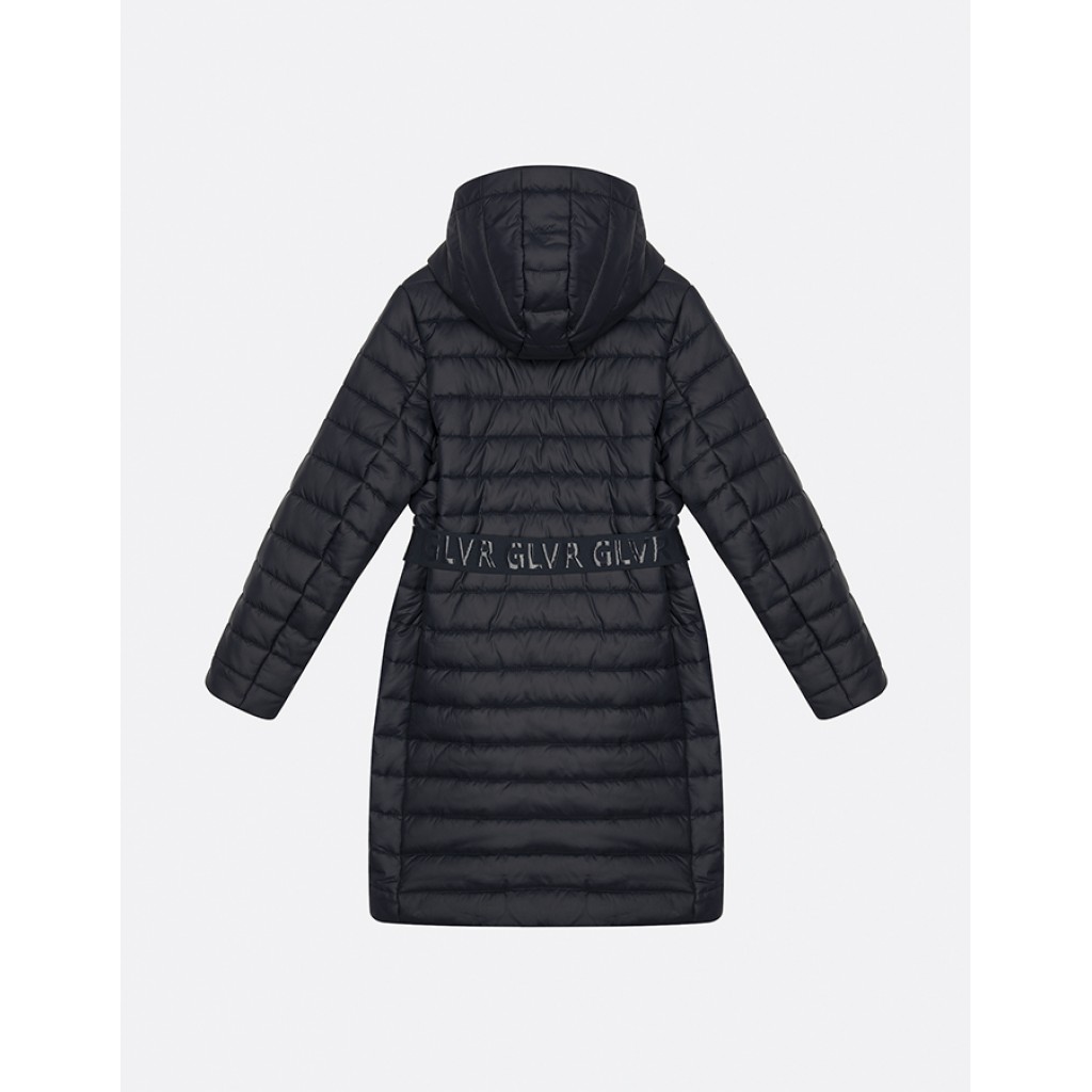 Стеганое демисезонное пальто на искусственном пуху - прекрасная возможность сформировать осенний гардероб школьницы с акцентом на стиль, практичность, рациональность. Эффектный пояс из эластичной тесьмы с нанесенным на нее глянцевым шрифтовым принтом делает пальто ярким и интересным по восприятию. Лаконичный дизайн модели воплощает представление о модной верхней одежде, способной красиво завершить повседневный образ девочки. Важно: наличие двух пулеров способствует регулировке длины молнии для комфортной эксплуатации изделия.