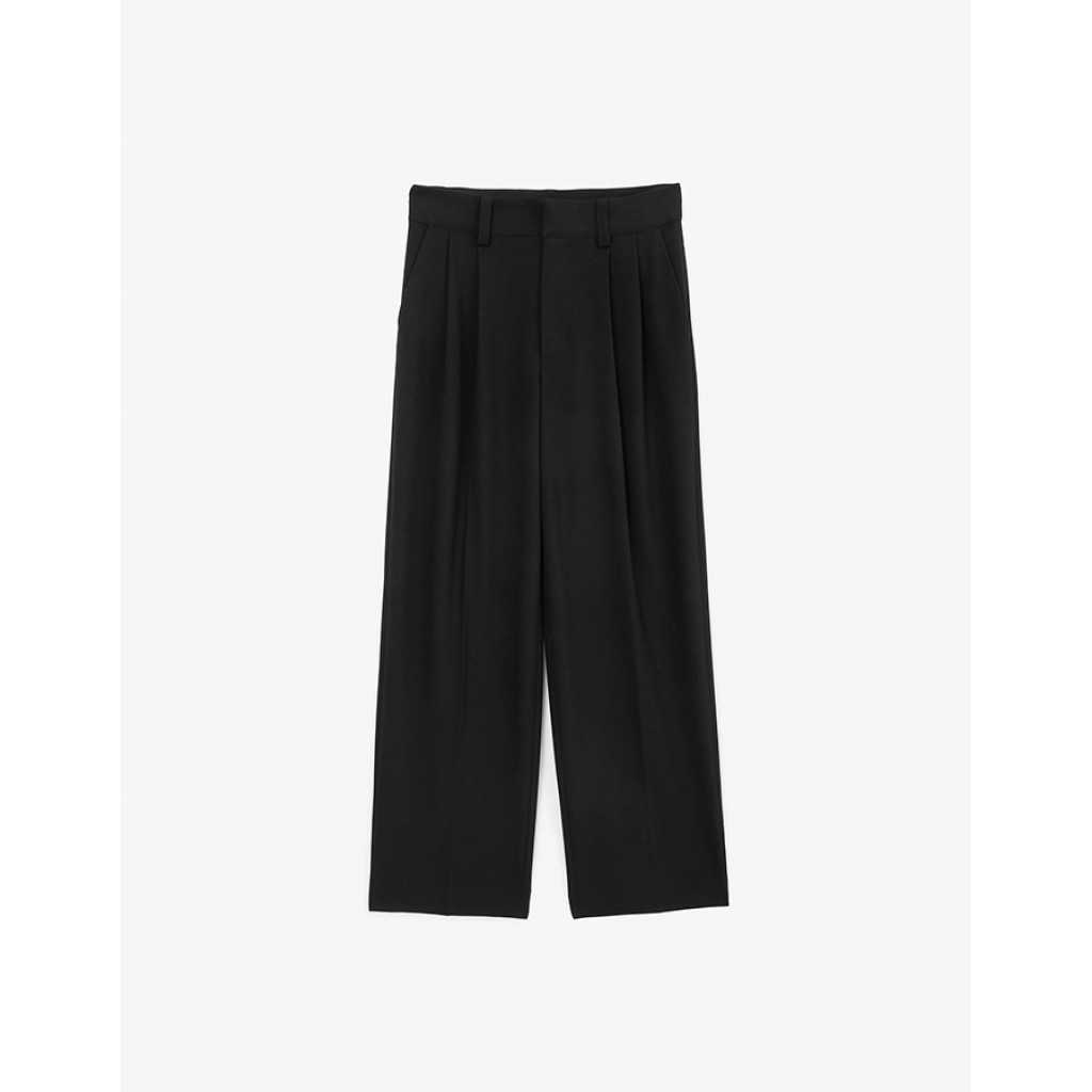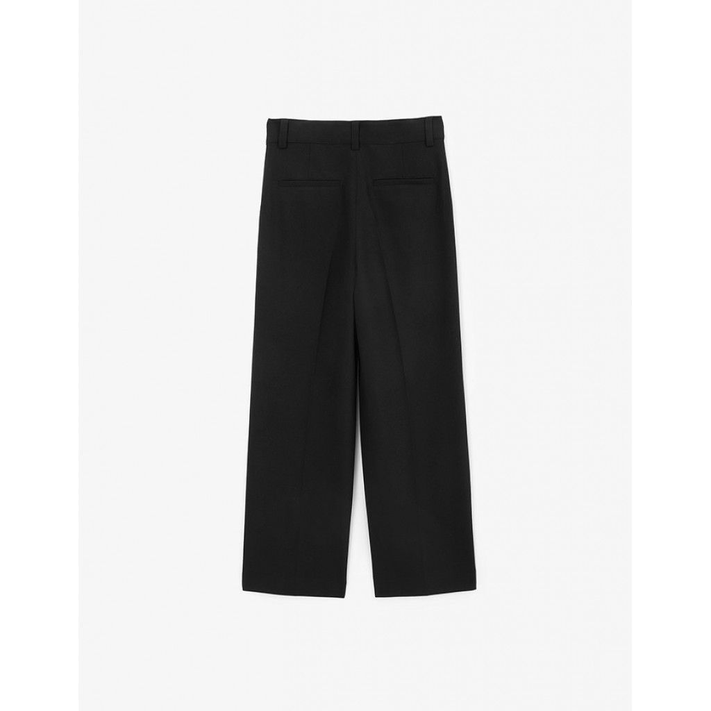 Широкие черные брюки из костюмной ткани – модный выбор, делающий подростка иконой стиля! Прямая свободная форма, защипы на передней части придают модели острый современный вид. Школьные брюки на шелковистой подкладке выполнены из поливискозы, отличающейся прочностью, мягкостью, долговечностью и эстетичным внешним видом. Удобные карманы со скосом на передней части и карманы-листочки сзади обеспечивают  комфортную эксплуатацию вещи. Брюки застегиваются на молнию, брючный крючок и пуговицу. Они станут прекрасной парой с рубашкой прямого кроя, пиджаком оверсайз, любым изделием из вязаного трикотажа, объемным свитшотом и толстовкой из мягкого футера, создав стильный и выразительный образ в духе времени.