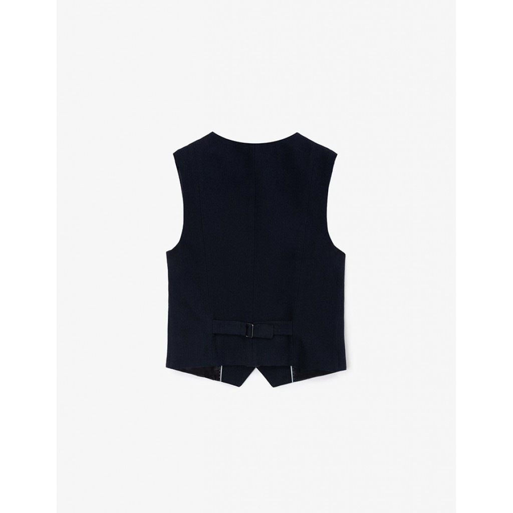 Строгий синий жилет из твида — классика вне времени и вне моды. Благодаря составу из 100% хлопка и интересной текстуре, жилет мягок, формоустойчив, очень приятен тактильно. Ложные листочки на полочках жилета имитируют входы в карман, подчеркивая традиционный дизайн модели. Шелковистая подкладка обеспечивает комфортную эксплуатацию. Жилет имеет хлястик на спинке для регулировки посадки. Школьный жилет для мальчика отлично смотрится и с элегантными костюмными брюками, и с монохромными джинсами прямого кроя. Он создаст потрясающий костюм-тройку с пиджаком и брюками из аналогичной ткани, став непременным атрибутом элегантного и выразительного делового образа ученика.