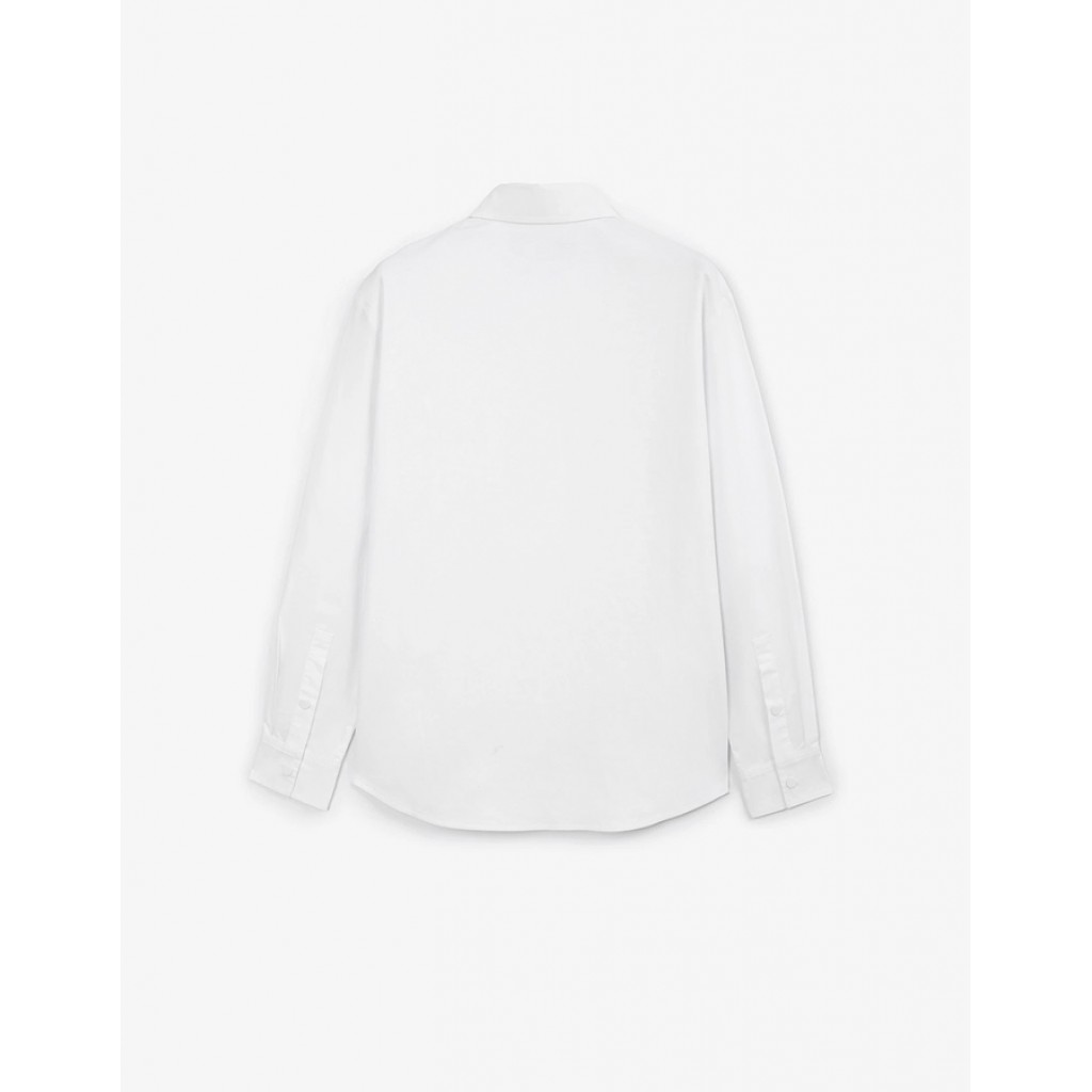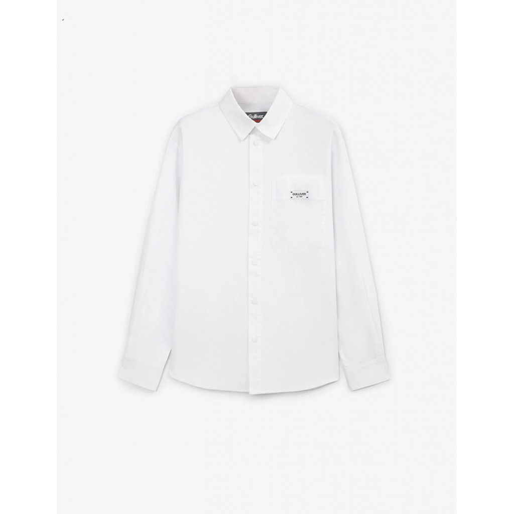 Белая школьная рубашка прямого свободного силуэта (relaxed fit) — прекрасная возможность соединить требования строгого дресс-кода с комфортом и свободой движений,  необходимых ребенку. Передняя часть и спинка выполнены из мягкого пластичного интерлока, очень приятного при тактильном контакте. Рукава с манжетами, планка, воротник и карман - из формоустойчивого рубашечного текстиля. Рубашка  застёгивается на кнопки, что очень удобно в повседневной эксплуатации.