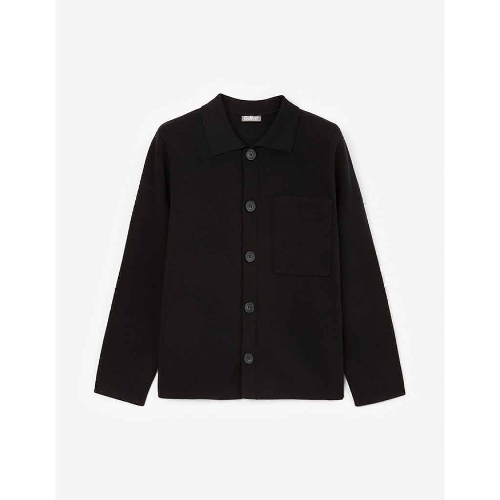 Черный вязаный кардиган – стильная современная классика, трендовая вещь, прекрасно вписывающаяся в модный школьный гардероб мальчика. Кардиган выполнен из мягкой смесовой пряжи из вискозы и хлопка, обеспечивающей приятные тактильные ощущения, уют и тепло. Особенность модели - рубашечная форма, делающая кардиган подобным модному овершоту. Отложной воротник позволяет гармонично сочетать школьный кардиган с футболками, сорочками, рубашками, создавая элегантные образы в стиле смарт кэжуал(smart casual). Кардиган застегивается на пуговицы. Лаконичный интеллигентный дизайн придает кардигану строгость и элегантность минимализма, делает его прекрасным завершением любых школьных комплектов.