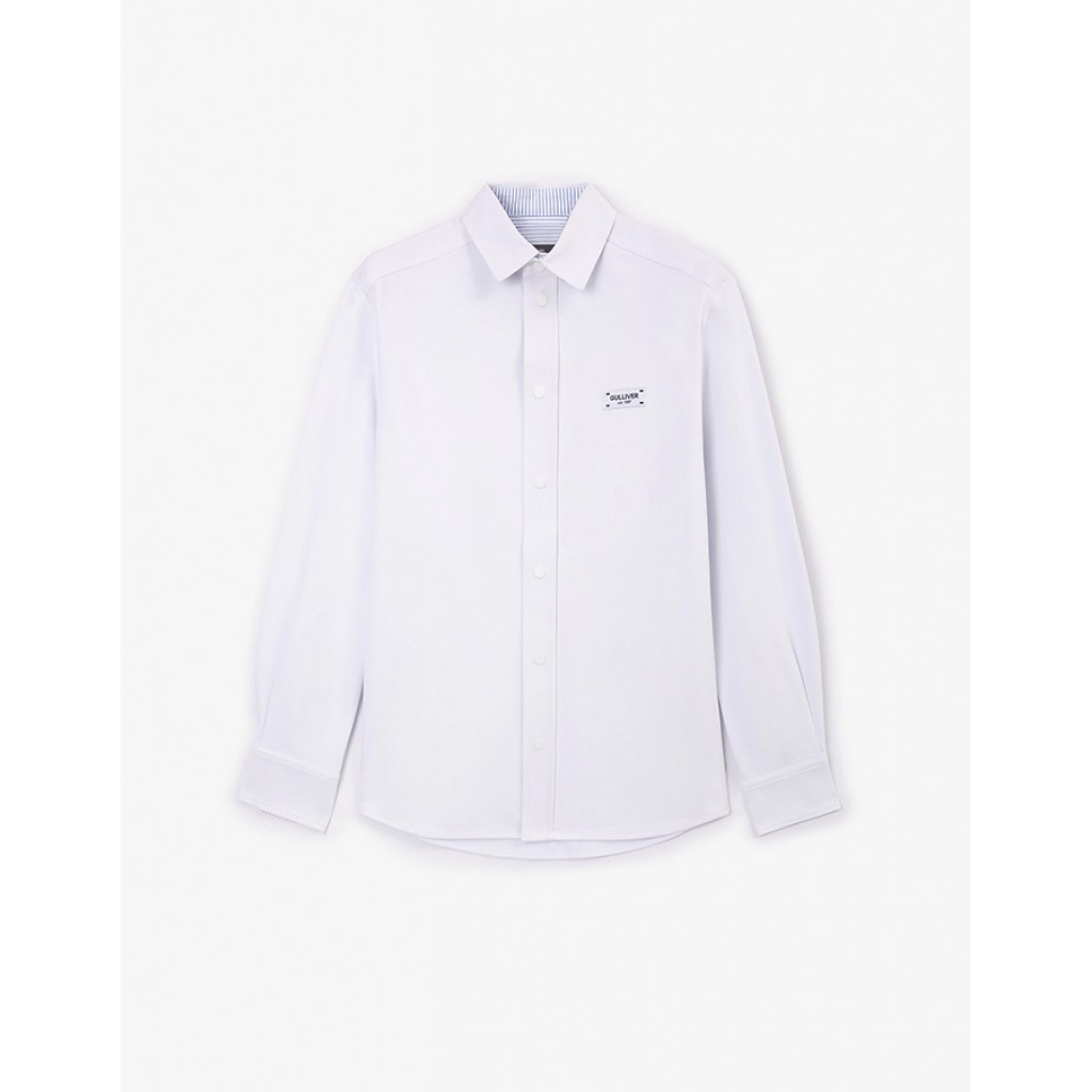 Трикотажная рубашка с длинным рукавом прямой свободной формы с удлиненной линией спинки — олицетворение комфорта и свободы движений! Мягкий пластичный хлопковый интерлок имеет гладкую матовую поверхность, отлично держит форму, воздухопроницаем, практичен, приятен тактильно. Внутренние части манжет, воротника и планки отделаны полосатым текстилем. Этот небольшой нюанс иллюстрирует высокий уровень дизайна и технологии, подчеркивающий беспрецедентное качество школьной рубашки Gulliver. Она застегивается на кнопки, что очень удобно в повседневной эксплуатации. В оформлении модели использована брендированная жаккардовая нашивка. Рубашка красиво сочетается с текстильными и трикотажными брюками, джинсами, кардиганами, жилетами, пиджаками, создавая элегантные школьные образы в стиле смарт кэжуал(smart casual).