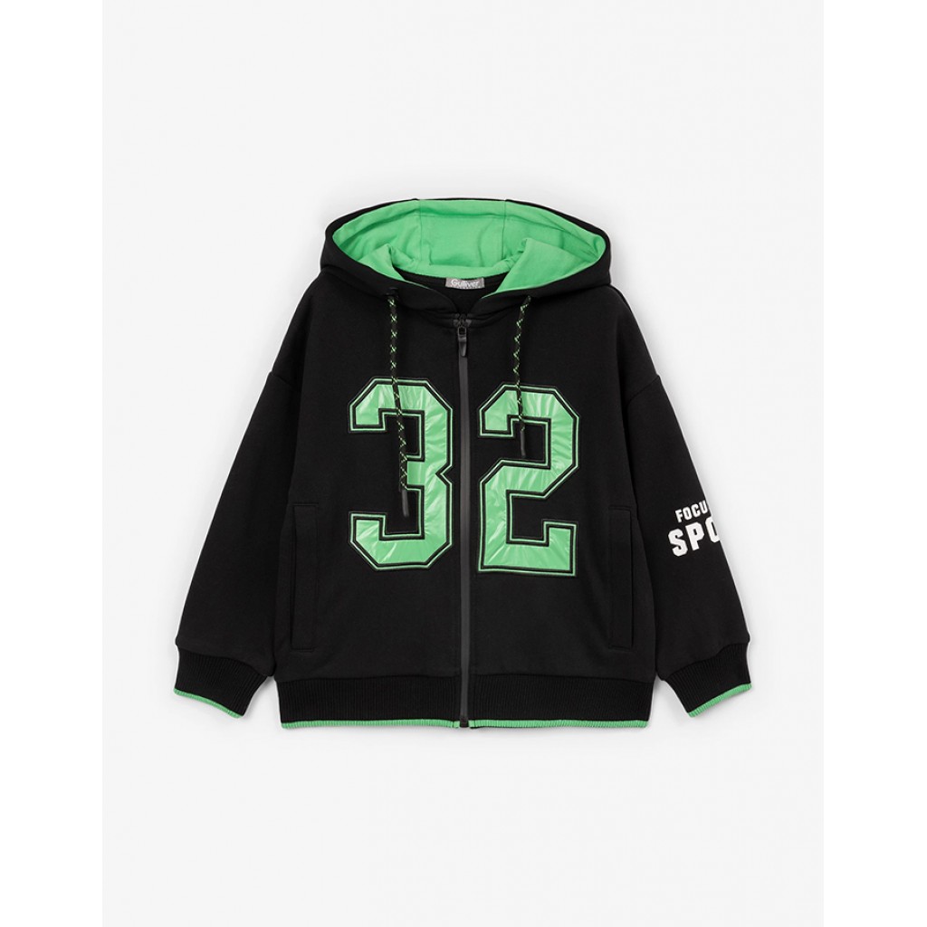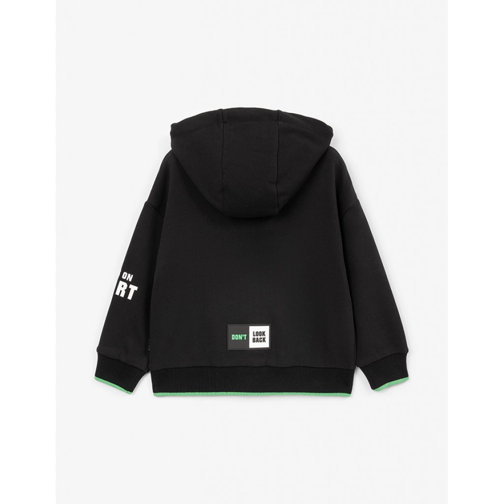 Распашная толстовка-бомбер мягкой свободной формы со спущенной линией плеч выполнена из хлопкового френч-терри с петельчатой изнанкой. Дизайн модели построен на цветовом контрасте основного материала и отделки, а также на ярких шрифтовым принтах и декорах, придающих толстовке энергичный драйвовый вид. Толстовка застегивается на литую влагостойкую молнию, имеет карманы-листочки.
