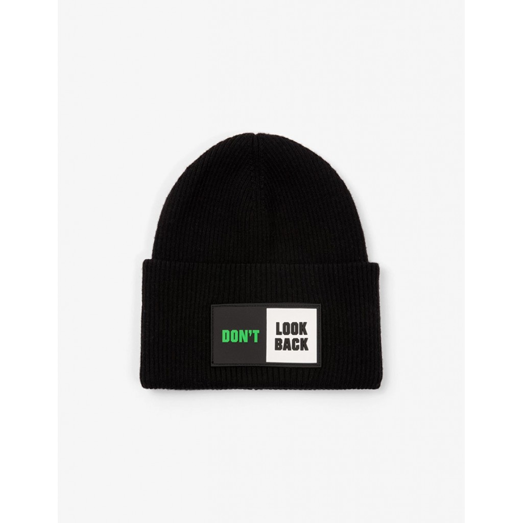 Черная вязаная шапка - стильный и практичный аксессуар, необходимый для комфортной прогулки. Выполненная из мягкой смесовой пряжи с добавлением натуральной шерсти, шапка очень приятна при тактильном контакте. В оформлении модели использована минималистичная контрастная нашивка с шрифтовым принтом.