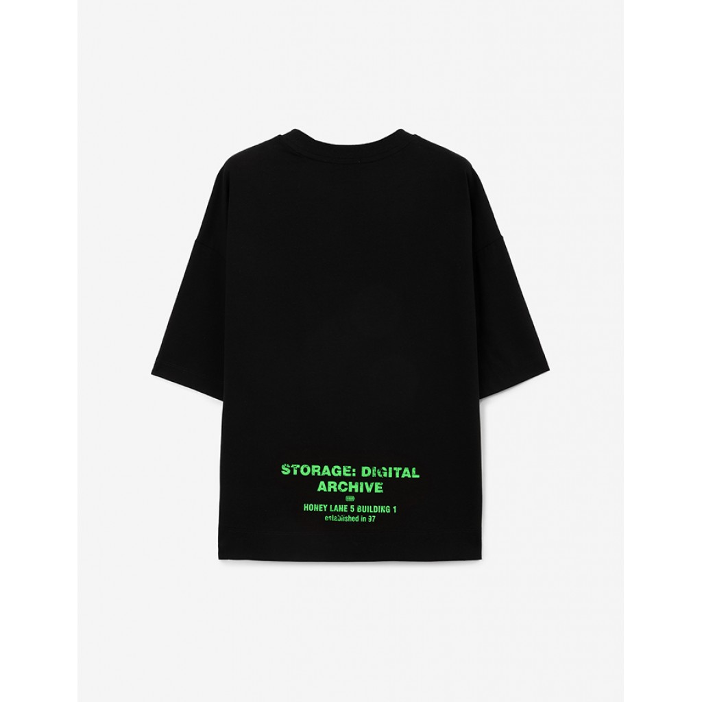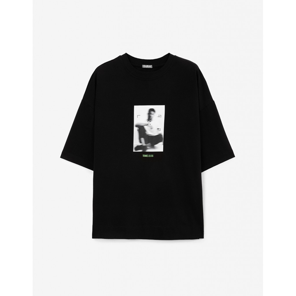 Черная футболка с коротким рукавом прямой свободной формы с заниженной линией спинки и разрезами в боковых швах - основа летнего гардероба мальчика! Дизайн модели построен на интересном принте геометрической формы с модным урбанистичным рисунком, сочетающем эффект фотографии на низкой выдержке и шрифтовую графику. Благодаря ему, базовая по форме футболка имеет уникальные черты, делая любой комплект с ней стильным, необычным, концептуальным, привлекающим внимание. Хлопковый трикотаж с эластаном гарантирует удобство, мягкость, пластичность, необходимые для комфортной эксплуатации вещи.