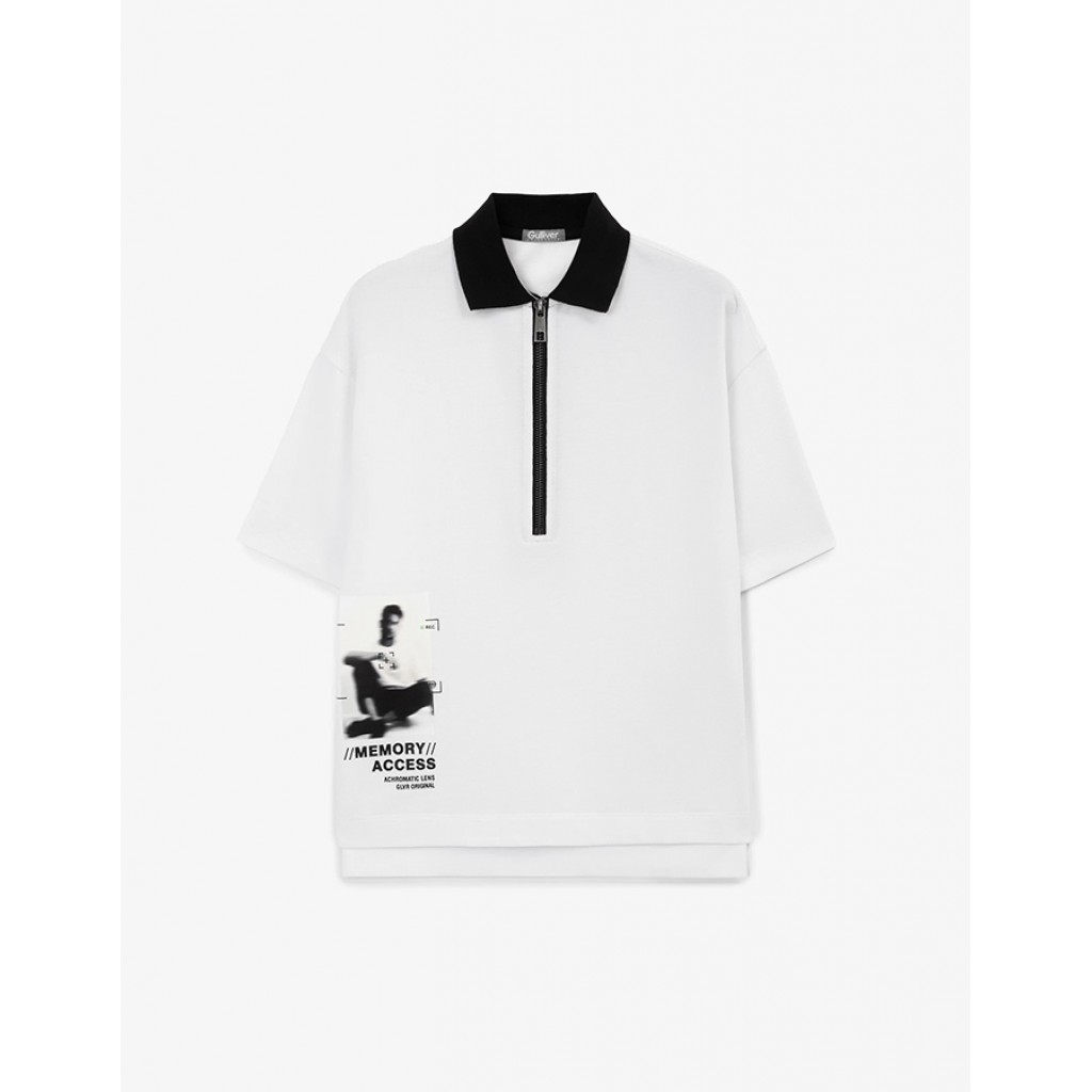 Белое поло из пике всегда выглядит красиво, благородно, аристократично! Изюминка модели в оригинальном решении горловины, имеющей, в отличие от традиционных поло, застежку на контрастную молнию. Прямое свободное поло с заниженной линией спинки и небольшими разрезами в боковых швах оформлено оригинальным урбанистическим принтом - нечеткой черно-белой фотографией, сделанной на низкой выдержке. Контрастный отложной воротник имеет яркую салатовую изнанку, привлекающую внимание и подчеркивающую принадлежность поло к коллекции Gulliver "Матрица". С любыми шортами, брюками, джинсами из "Матрицы" и не только, оно будет выглядеть просто и элегантно, придавая образам с ним комфорт, свободу и непринужденность городского стиля.