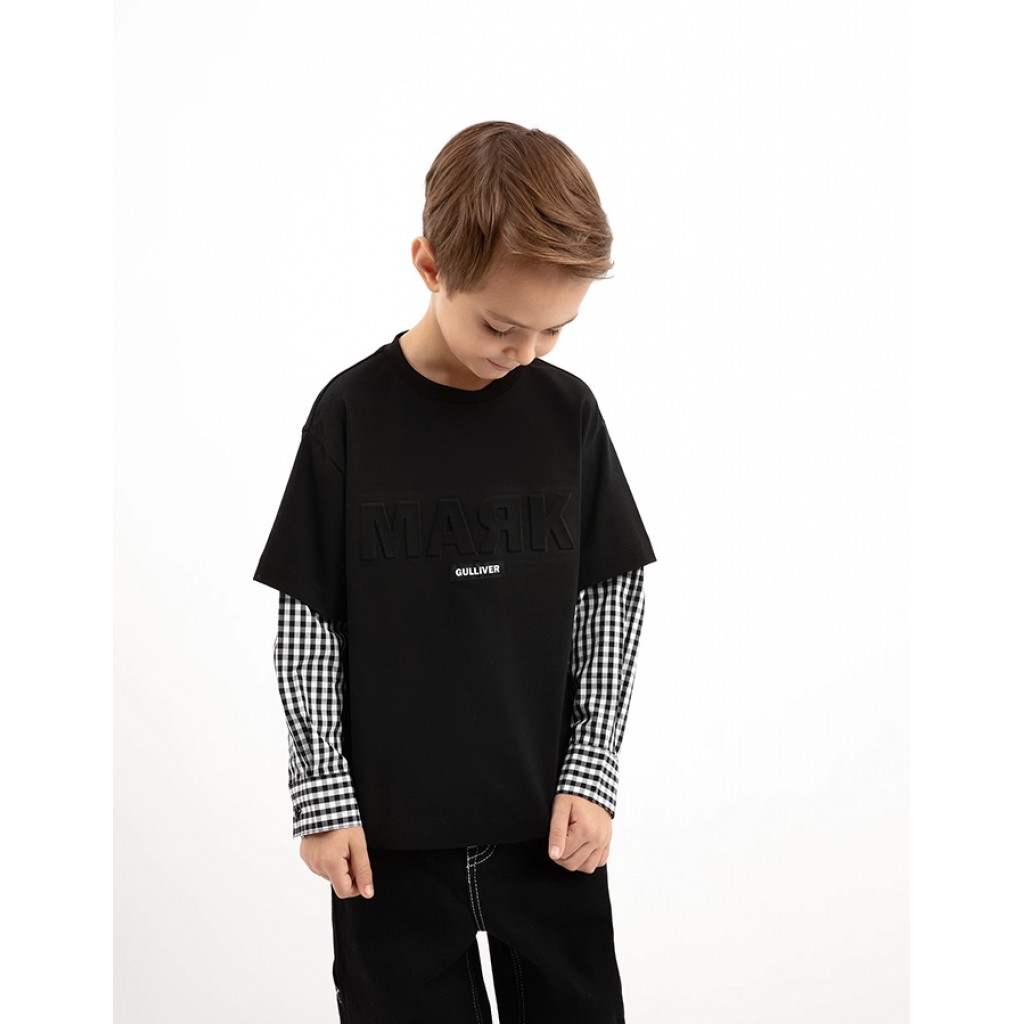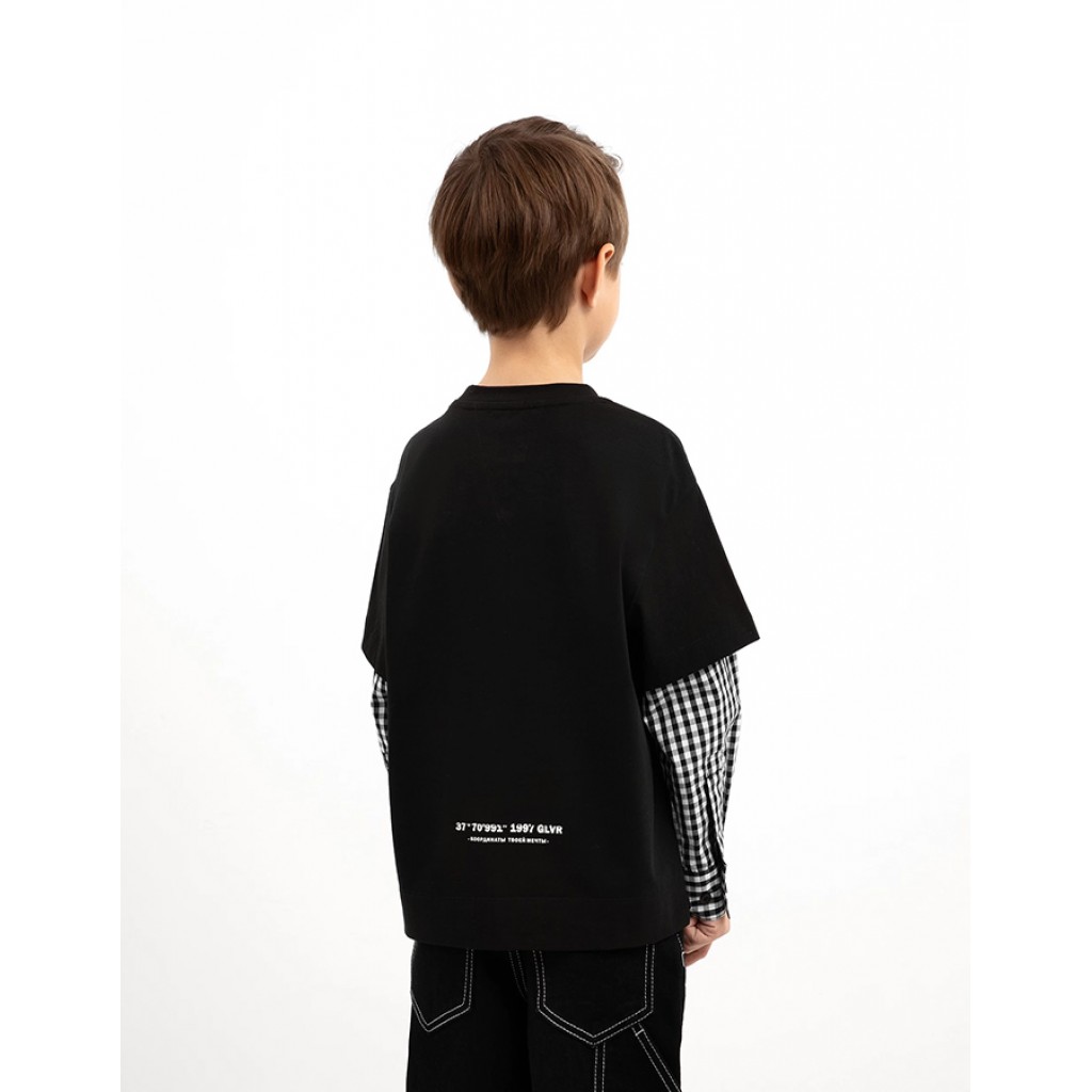 Футболка прямой свободной формы с длинным рукавом, имитирующая модную многослойность, - прекрасная альтернатива лонгсливу. Комбинация фактур основного трикотажного полотна и текстиля в мелкую клетку на рубашечных рукавах создает цветовой и тактильный контраст, делает футболку ярче, интереснее, оригинальнее однотонных аналогов. В оформлении модели использован неброский тисненый шрифтовой декор и брендированная нашивка. Удлиненная линия спинки и небольшие разрезы в боковых швах придают образам с футболкой расслабленный и непринужденный вид.