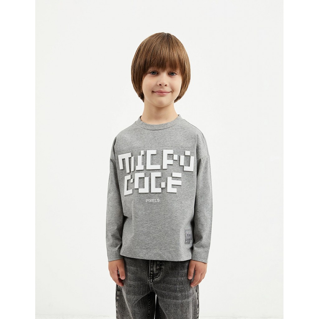 Лонгслив прямой свободной формы - основа летнего гардероба мальчика! Дизайн модели построен на 3D-тиснении с принтом в тематике ретро-гейминга. Благодаря ему, базовый по форме лонгслив с удлиненной линией спинки имеет уникальные черты, делая любой комплект с ним стильным, необычным, концептуальным, привлекающим внимание. Хлопковый меланжевый трикотаж с эластаном гарантирует удобство, мягкость, пластичность, необходимые для комфортной эксплуатации вещи. В оформлении модели использована текстильная нашивка со шрифтовыми элементами.