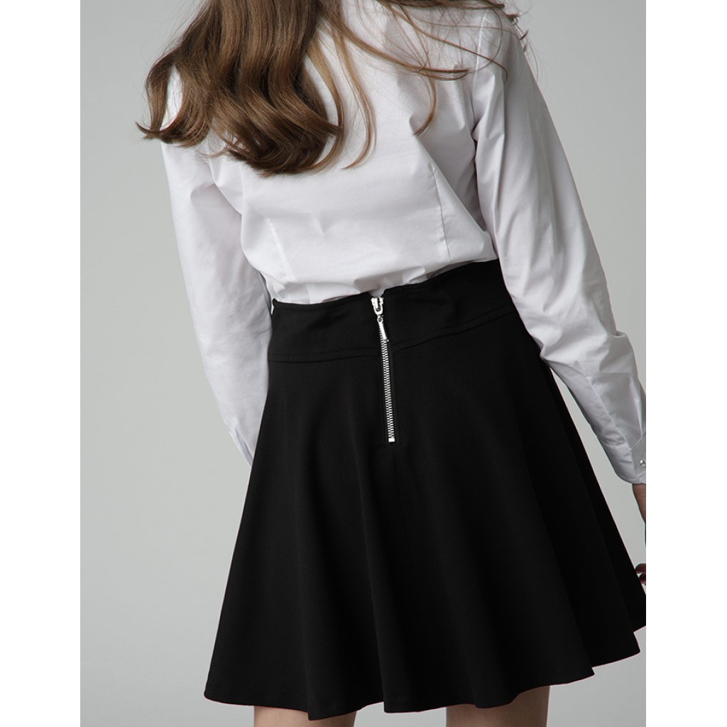 Черная расклешенная юбка - базовая модель в школьном гардеробе девочки. С любой блузкой, футболкой, жилетом, стильная лаконичная юбка составит строгий гармоничный комплект. Юбка выполнена из фактурного текстиля, что делает ее интересной и элегантной. Юбка на комфортной вискозной подкладке имеет внутреннюю регулировку пояса, что гарантирует красивую и комфортную посадку модели на девочках разного телосложения.
