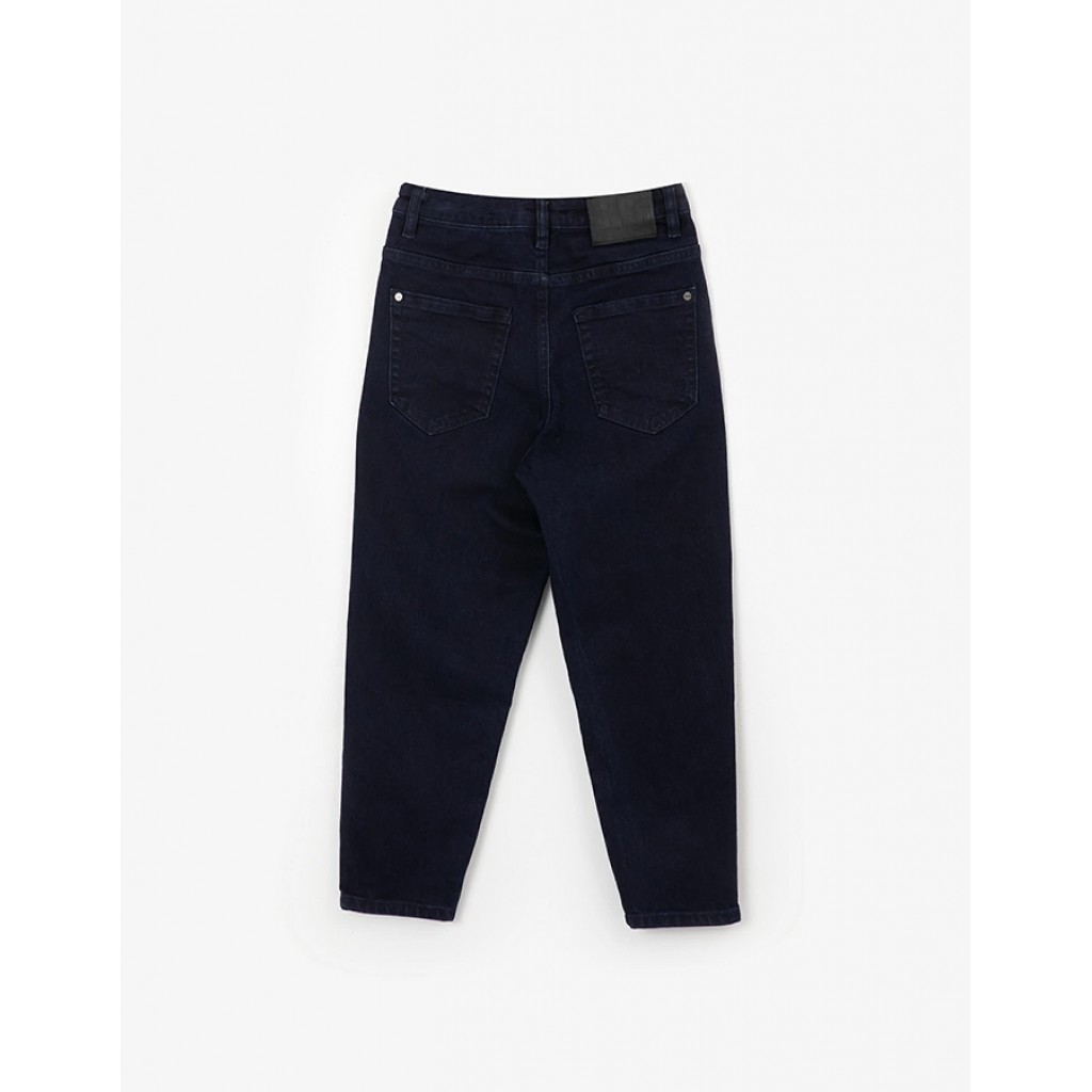 Лаконичные синие джинсы без контрастных строчек, потертостей и повреждений - прекрасная альтернатива брюкам из костюмной ткани. Джинсы практичны, комфортны, просты в эксплуатации и уходе. Форма Mom-fit создает модный современный силуэт, подчеркивая актуальность образа школьницы.