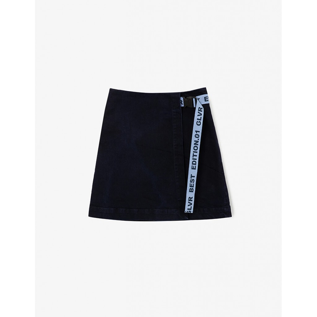 Стильная джинсовая юбка - отличное решение для будней девочки! Практичная джинсовая ткань без потертостей и повреждений способствует формированию серьезного образа ученицы. Интересный дизайн модели делает юбку воплощением модных трендов. Накладная деталь, служащая запАхом, фиксируется с помощью контрастной тесьмы с шрифтовым принтом и пластиковой брендированной пряжки. Это решение, имитирующее многослойность, придает образам с юбкой яркие приметы спортивного стиля, делая их динамичными и интересными. Юбка застегивается на потайную молнию в боковом шве.