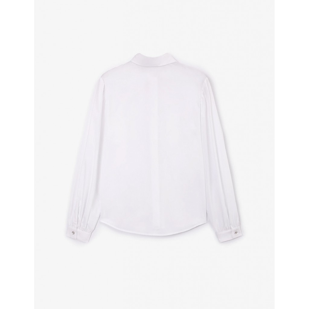 Белая школьная блузка с длинным рукавом – элегантный акцент повседневного гардероба ученицы. Блузка прямой свободной формы выполнена из хлопкового текстиля, дарящего ощущение легкости, свежести, комфорта в течение дня. Объемные выразительные рукава, изящные вертикальные защипы, мелкие сияющие стразы на передней части придают школьным комплектам с блузкой нотку романтики. Школьная блузка застегивается на пуговицы, скрытые элегантной супатной планкой. Она гармонично сочетается и с классическими юбками и брюками, и с модными трубами, и с палаццо, легко вписываясь как в строгие, так и в непринужденные образы.