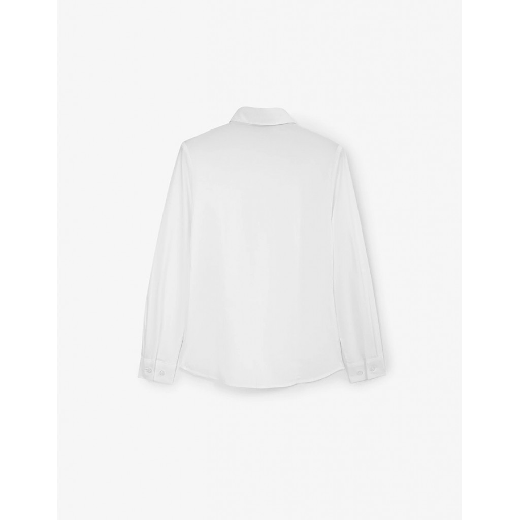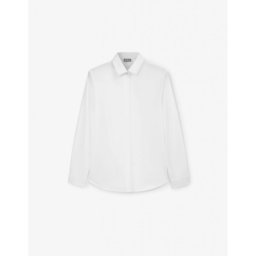 Белая школьная блузка приталенного силуэта с длинным рукавом – прекрасная базовая вещь для школьных образов девочки. Блузка выполнена из легкого хлопкового текстиля с эластаном, комфортного в эксплуатации и уходе. Минималистичный дизайн и супатная застежка на пуговицы придают модели строгий лаконичный вид.