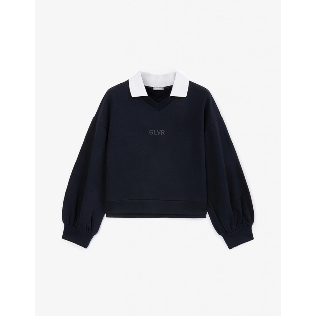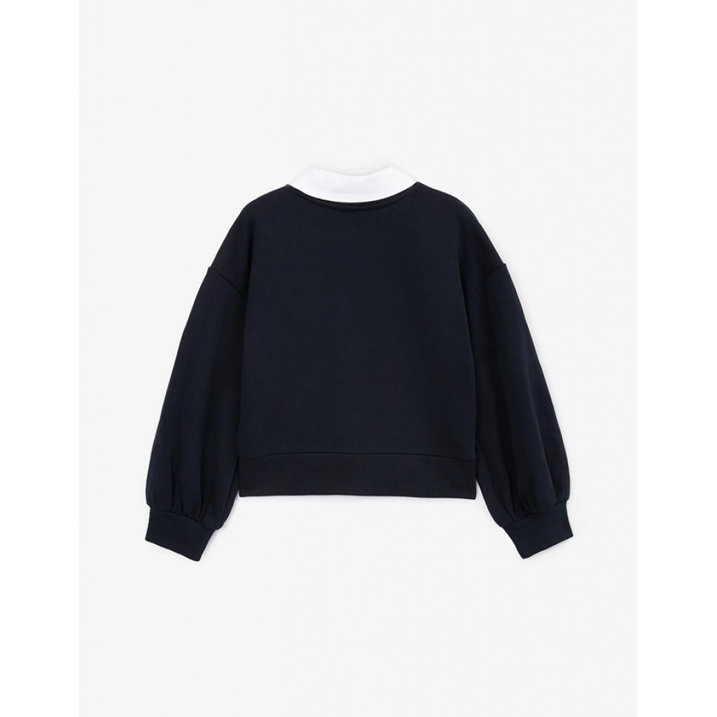 Темно-синий свитшот свободного кроя – стильный и удобный вариант для школьных будней. Свитшот для девочки выполнен из плотного гладкого френч-терри с мягкой петельчатой изнанкой. Контрастный отложной воротник имитирует многослойность, делает свитшот свежим, элегантным, интеллигентным. V- образная горловина придает свитшоту свежесть и новизну. Рукава, расширяющиеся к низу и собранные на манжеты, имеют красивую и небанальную форму. Они подчеркивают оригинальный дизайн модели, придавая ей особый шарм. Свитшот гармонично сочетается и с классическими брюками и юбками, и со струящимися палаццо, и с энергичными карго, становясь основой как для строгих, так и для непринужденных школьных комплектов. В оформлении модели использован неброский шрифтовой принт в цвет изделия.