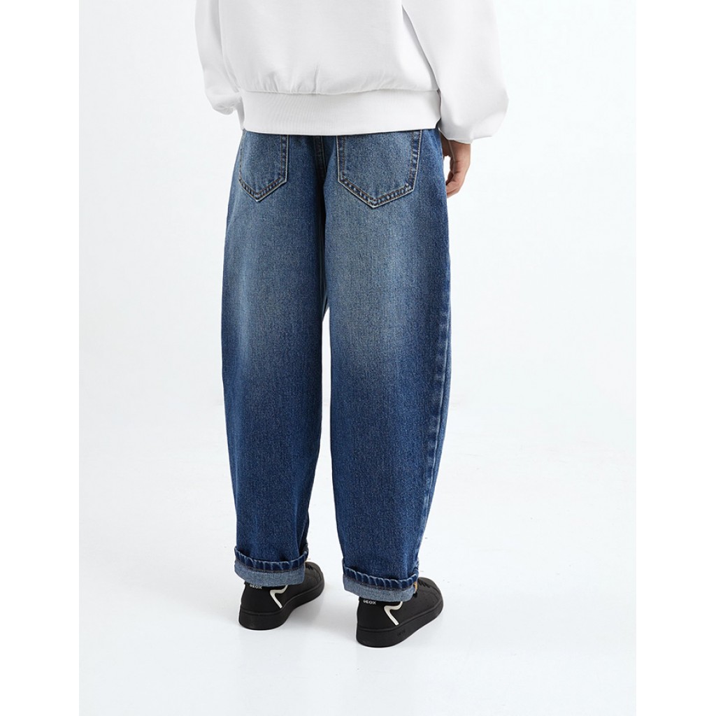 Джинсы высокой посадки силуэта мом-фит - основа стильных весенне-летних образов девочки. Выполненные из плотного хлопкового денима с винтажными потертостями и дестрой-эффектом, они отлично держат форму, практичны, комфортны в повседневной эксплуатации. Особенность дизайна - выстроченные рельефы на передней части, которые придают базовой по форме модели интересный акцент. Объем талии можно регулировать с помощью эластичной тесьмы на внутренней части пояса. Джинсы застегиваются на молнию и пуговицу-болт.
