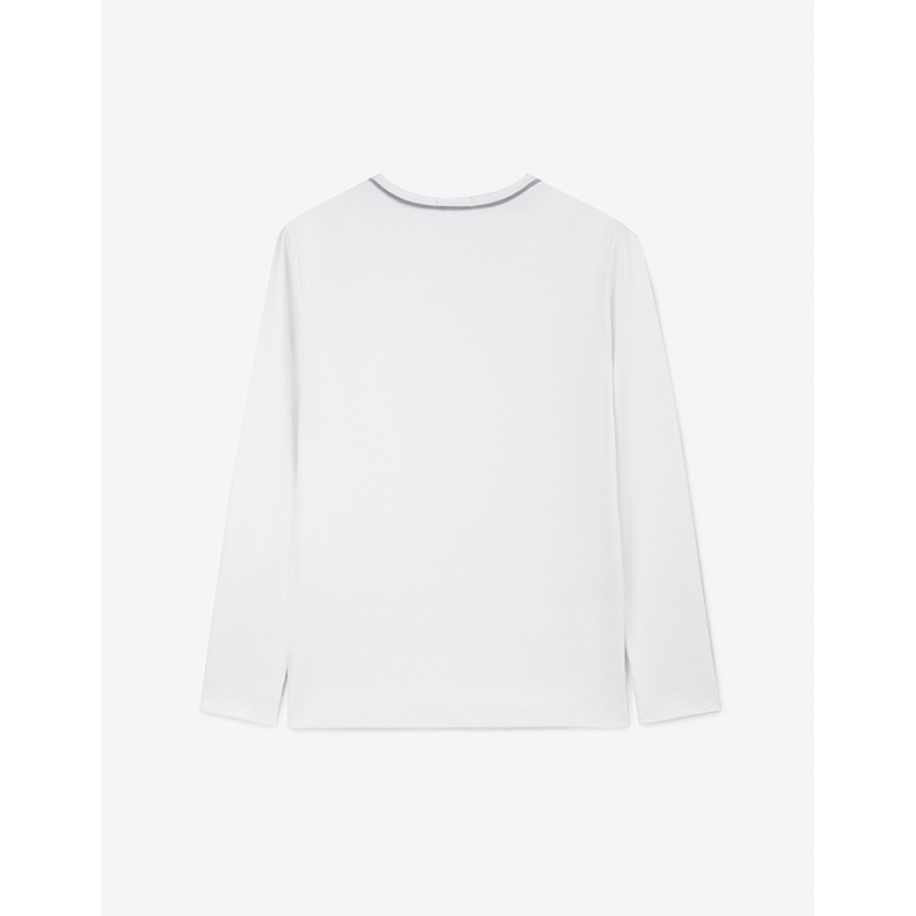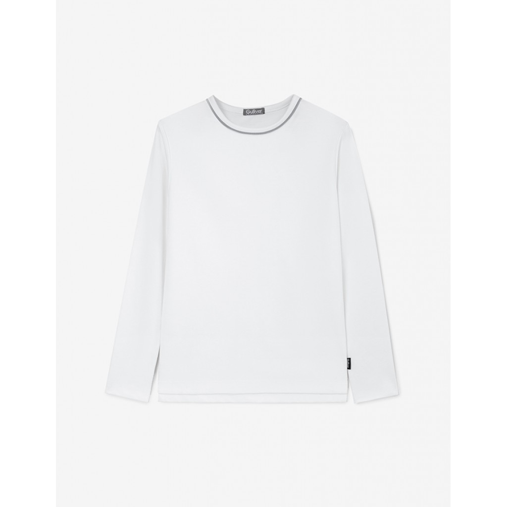 Белый лонгслив - базовый элемент школьного гардероба. Лонгслив выполнен из мерсеризованного хлопкового интерлока, который отличается оптимальной плотностью, прочностью и приятной к телу шелковистой текстурой. О-образная горловина модели подчеркнута отделочным кантом, добавляющим контрастный акцент. Лаконичный интеллигентный дизайн делает лонгслив очень стильным, гармонично сочетающимся с любыми юбками, брюками, сарафанами.
