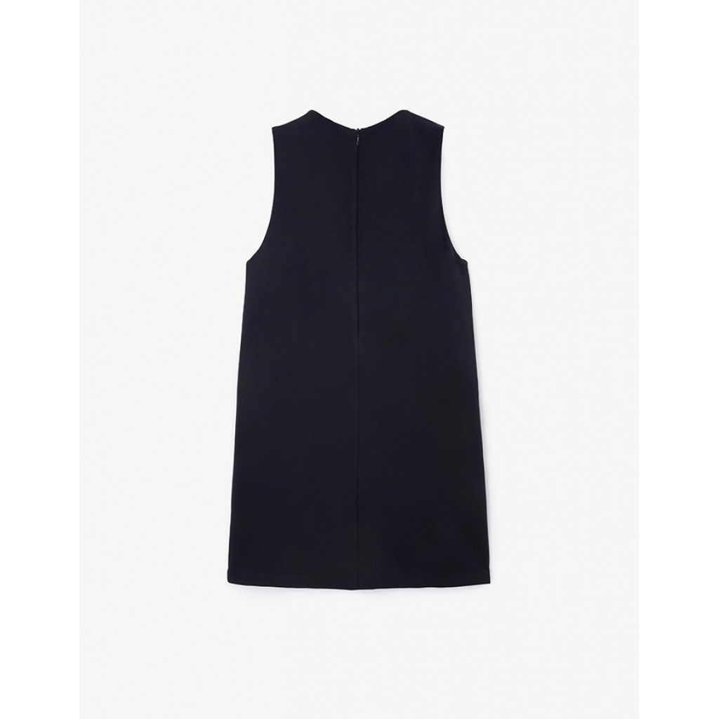Темно-синий сарафан трапециевидной формы – удобное и практичное решение для школьных будней. Сарафан выполнен из мягкого пластичного джерси на основе вискозы, обладающего гладкой, приятной на ощупь поверхностью, хорошей пластикой, высокой износостойкостью. Школьный сарафан имеет удобные карманы в боковых швах. Шелковистая подкладка до линии талии обеспечивает комфортное взаимодействие с изделиями первого слоя. В оформлении модели использован небольшой шрифтовой принт в цвет изделия. Сарафан застегивается на потайную молнию на спинке. Деликатный, лаконичный, он легко сочетается с классическими блузками, лонгсливами, водолазками, позволяя создавать разнообразные образы без всяких усилий.