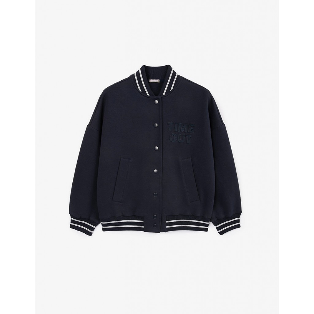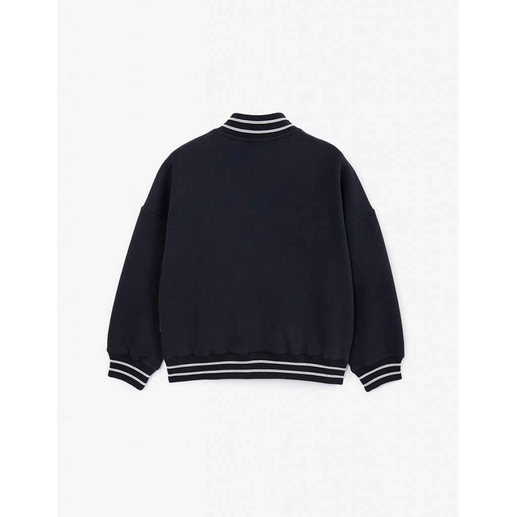 Синий трикотажный бомбер силуэта умеренный оверсайз разнообразит школьные образы! И как верхний слой в период межсезонья, и как завершение школьного комплекта - под пальто или куртку - зимой, бомбер должен быть всегда под рукой. Выполненный из мягкого и приятного тактильно интерлока на основе хлопка, он практичен, комфортен, износостоек. Свободная форма, застежка на кнопки, а также воротник-полустойка, манжеты, низ изделия, выполненные из риба с контрастными полосками, придают бомберу остроту и динамику спортивного стиля. На передней части расположен неброский шрифтовой декор, созданный в технике аппликации с открытыми срезами. Карманы-листочки способствуют удобству в эксплуатации вещи. Бомбер станет отличным выбором для школьных будней и свободного времени. Он прекрасно сочетается с любыми текстильными и трикотажными брюками, джинсами, юбками, придавая каждому образу нотки модного стиля стиле препи(preppy).