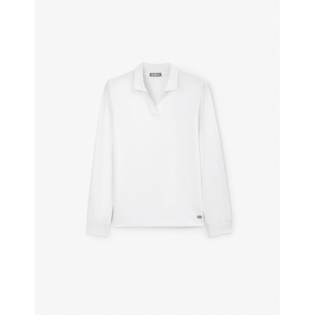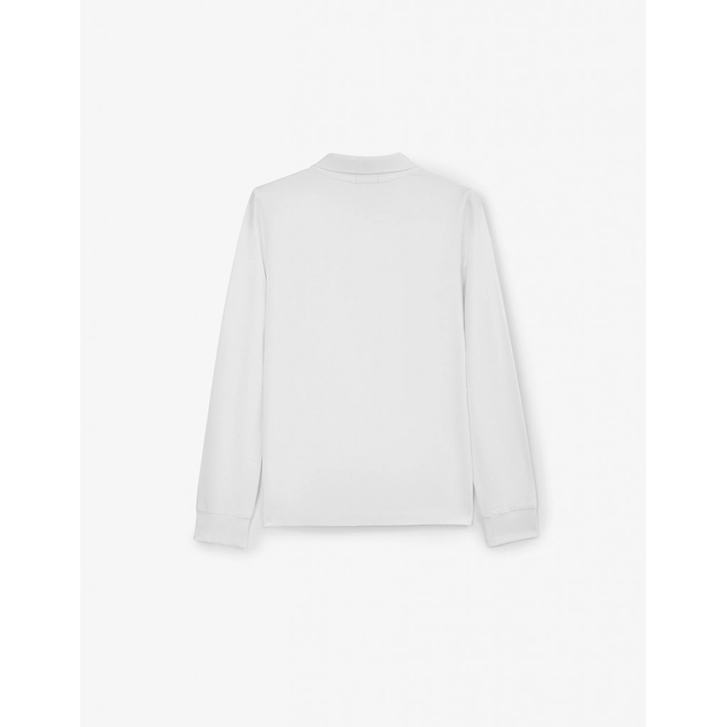 Белое поло с длинным рукавом – базовая вещь в гардеробе школьницы! Поло выполнено из мягкого хлопкового трикотажа, приятного тактильно и комфортного в эксплуатации. Изюминка модели - V-образная горловина, которая в сочетании с традиционным для поло вязаным воротником выглядит ново, необычно и очень женственно. Школьное поло для девочки легко комбинируется с юбками, сарафанами, текстильными и трикотажными брюками, дополняя как строгие, так и расслабленные школьные и повседневные образы. В оформлении модели использован деликатный брендированный элемент.