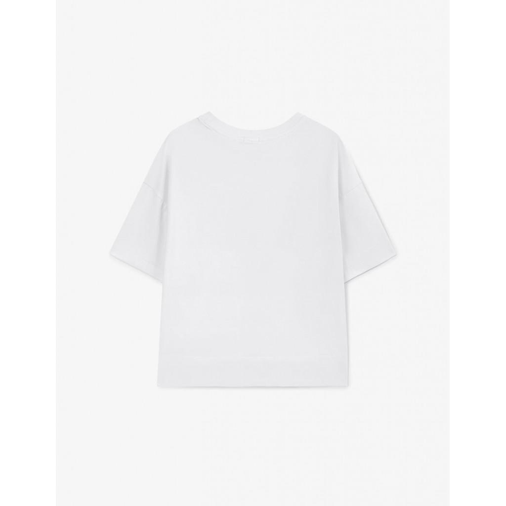 Белая базовая футболка свободного кроя – важнейший атрибут комфортной спортивной формы! Футболка с заниженной линией спинки выполнена из мягкого хлопкового полотна, приятного на ощупь и практичного в эксплуатации. В оформлении модели использован небольшой шрифтовой принт, придающий футболке стильный акцент.