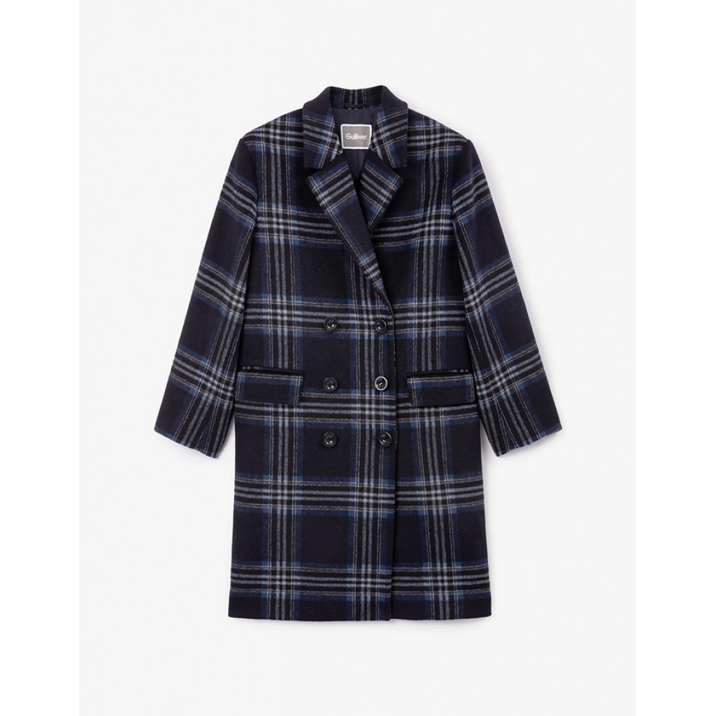 Синее двубортное пальто в клетку — самый элегантный вариант верхней одежды в период межсезонья. Оно выполнено из теплой и тактильно приятной пальтовой ткани с высоким содержанием шерсти мериноса, на мягкой шелковистой подкладке. Прямая свободная форма, классический английский воротник и стильная клетка тартан, подчеркивающая связь традиций и современности, придают изделию актуальный, острый, интересный вид. Шлица на спинке и два кармана с клапанами на передней части обеспечивают свободу движений и удобство в эксплуатации. Двубортное пальто в клетку станет универсальным элементом гардероба девочки, подходящим как для школьных аутфитов, так и для свободного времени.
