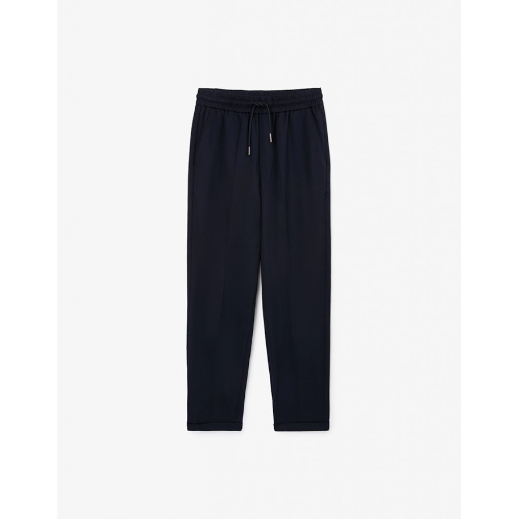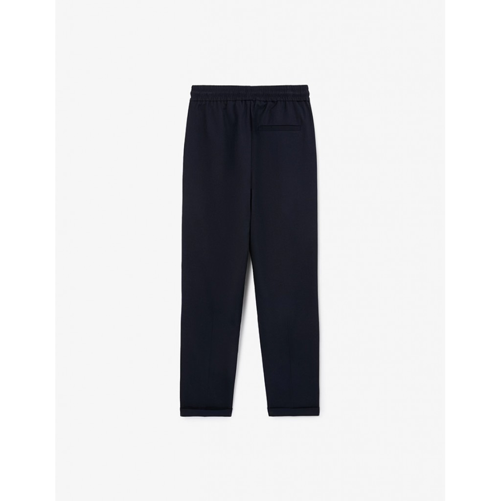 Синие брюки c поясом на резинке и шнурком – модная и комфортная модель школьного гардероба, олицетворение актуального стиля смарт кэжуал(smart casual). Брюки выполнены из гладкой костюмной ткани с добавлением натуральной шерсти. Она делает брюки красивыми и пластичными, хорошо держащими форму, не требующими кропотливого ухода. Школьные брюки имеют прямую, чуть зауженную к низу форму. Манжеты придают модели законченный вид. Карманы со скосами на передней части способствуют удобной эксплуатации. Брюки станут универсальной основой для множества школьных и повседневных образов, гармонично сочетаясь с лонгсливами, водолазками, рубашками, любыми изделиями из вязаного трикотажа.