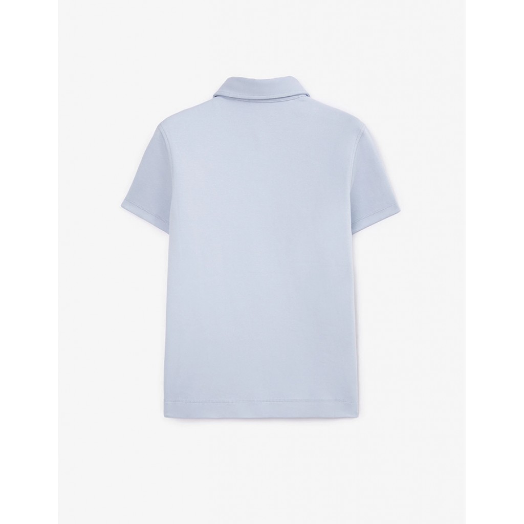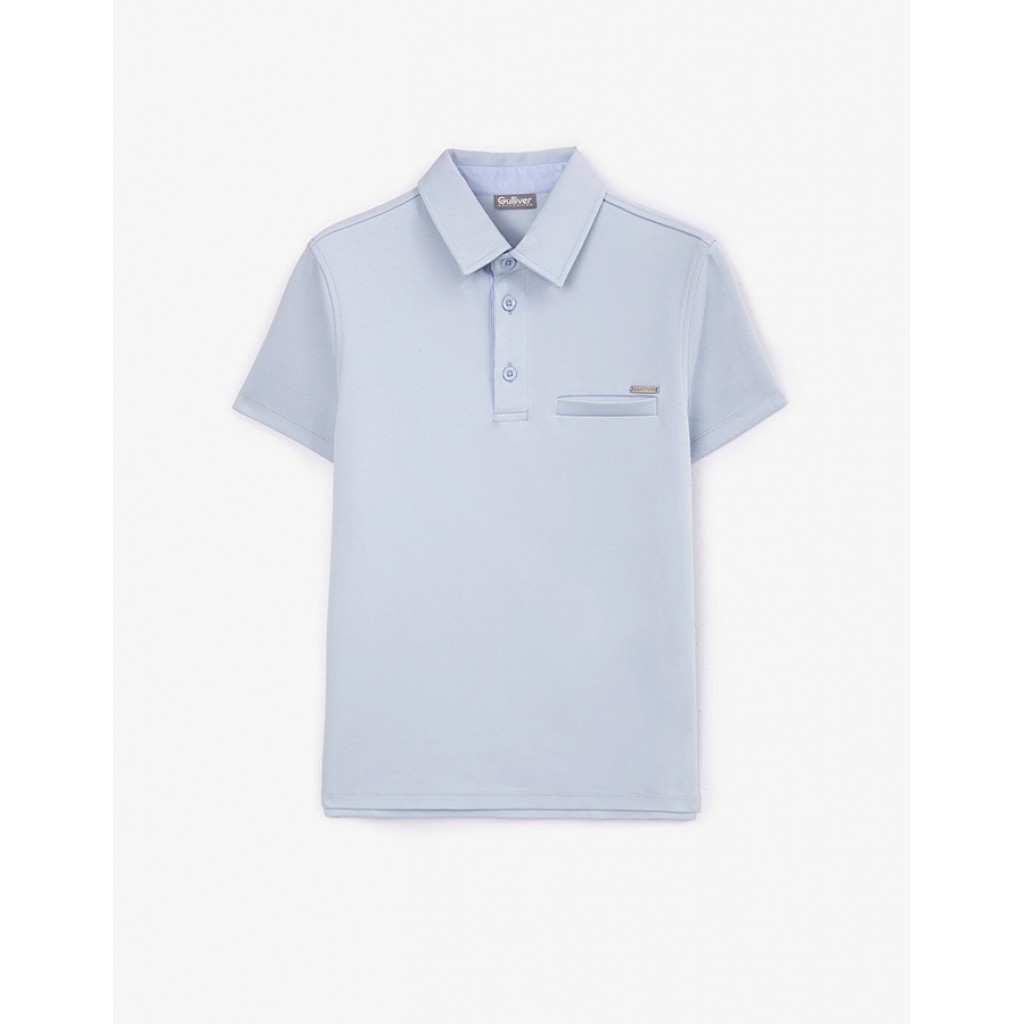 Лаконичное голубое поло с коротким рукавом и удлиненной линией спинки смотрится элегантно, аристократично, изысканно. Выполненное из мягкого и пластичного хлопкового интерлока с застежкой на пуговицы, поло - прекрасный вариант и для школьных будней, и для свободного времени. В оформлении поло использована небольшая шрифтовая нашивка.