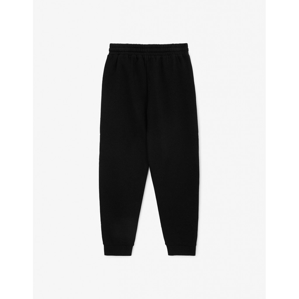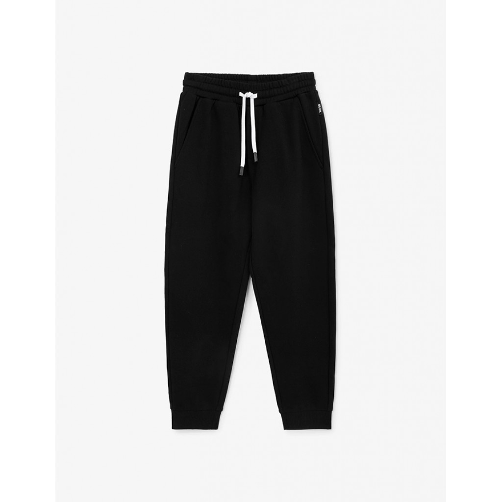 Черные трикотажные брюки - необходимая составляющая для занятий физкультурой и спортом. Брюки выполнены из хлопкового френч-терри, благодаря чему отлично держат форму, комфортны, неприхотливы в уходе. Пояс  на резинке с кордами обеспечивает регулировку объема и надежную фиксацию изделия на фигуре. В комплект к брюкам прилагается удобная хлопковая сумка-мешок для аккуратного хранения физкультурной формы до и после занятий. Глянцевый шрифтовой принт на сумке придает всему набору концептуальность и завершенность, а также делает его отличным подарком ребенку в преддверии учебного года.