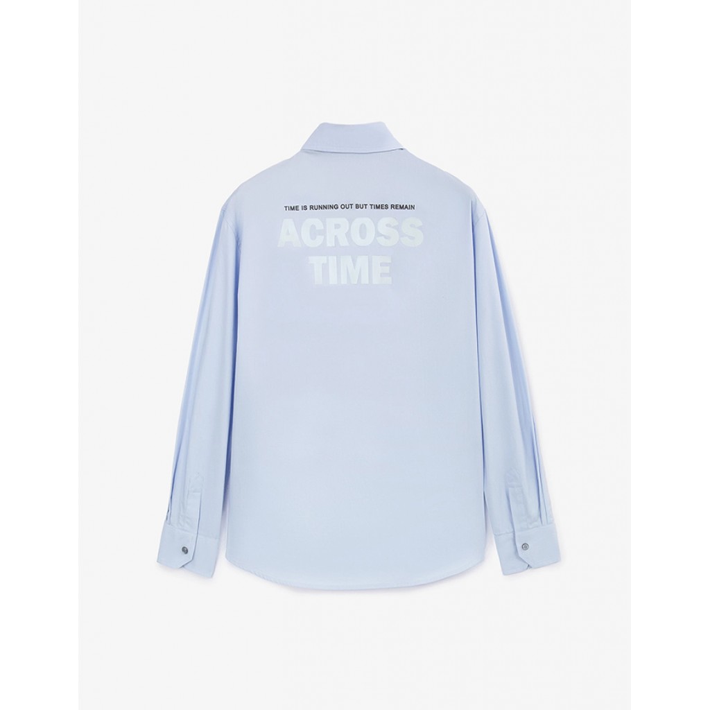 Голубая рубашка с длинным рукавом – важная составляющая стильных школьных образов мальчика. Рубашка выполнена из легкого хлопкового текстиля, комфортного в эксплуатации и уходе. Классический прямой крой(regular fit) с застежкой на пуговицы, скрытые элегантной супатной планкой, придает модели строгий и лаконичный вид. Дополнительная петелька на планке позволяет при желании зафиксировать галстук. На спинке расположен выразительный шрифтовой принт, добавляющий модели современный акцент.