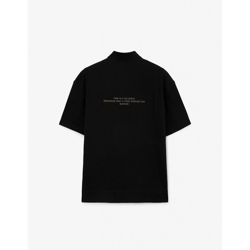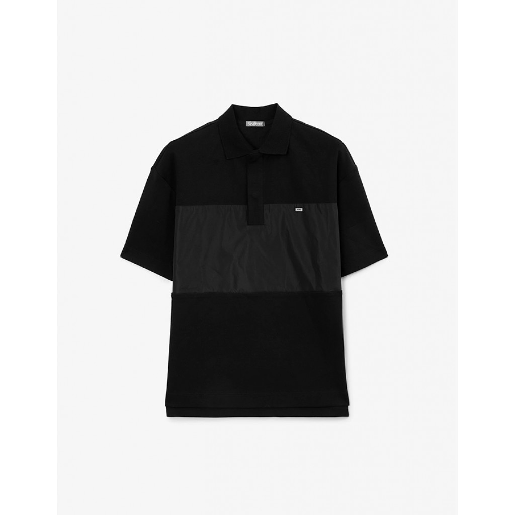 Черное поло с коротким рукавом прекрасно впишется в школьный гардероб мальчика, создав интересный образ в стиле смарт кэжуал(smart casual). Дизайн модели построен на игре фактур. Мягкий, плотный матовый интерлок отлично держит форму. Широкая горизонтальная плащевая вставка создает гармоничный визуальный и тактильный акцент. Прямая свободная форма с удлиненной линией спинки и небольшие разрезы в боковых швах способствуют свободе движений мальчика. В оформлении поло использован деликатный шрифтовой принт и металлическая брендированная табличка. Поло застегивается на скрытые кнопки.
