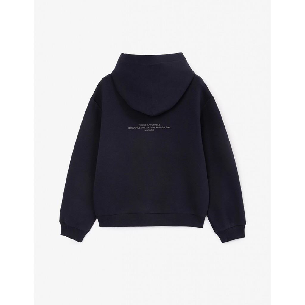 Синее худи — прекрасный вариант для будней мальчика. Если спортивный стиль приветствуется правилами учебного заведения, худи создаст 100% комфорт, став основой школьного гардероба. Худи выполнено из мягкого хлопкового интерлока с гладкой и приятной на ощупь поверхностью. Свободный крой со спущенной линией плеч обеспечивает свободу движений. Лаконичный дизайн модели, подчеркнутый маленькой брендированной табличкой на передней части и шрифтовым принтом на спинке, делает худи воплощением минимализма.