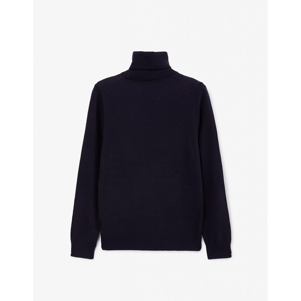 Темно-синяя вязаная водолазка – одно из самых комфортных и удобных изделий в гардеробе мальчика! Водолазка связана из мягкой пряжи с преобладанием хлопка, обеспечивающей тепло и приятные тактильные ощущения. Высокая горловина создает надежную защиту в холодное время года. Лаконичный дизайн придает водолазке строгость и элегантность минимализма. Ее легко интегрировать в стильный школьный комплект с трикотажными и текстильными брюками, джинсами, классическим костюмом.