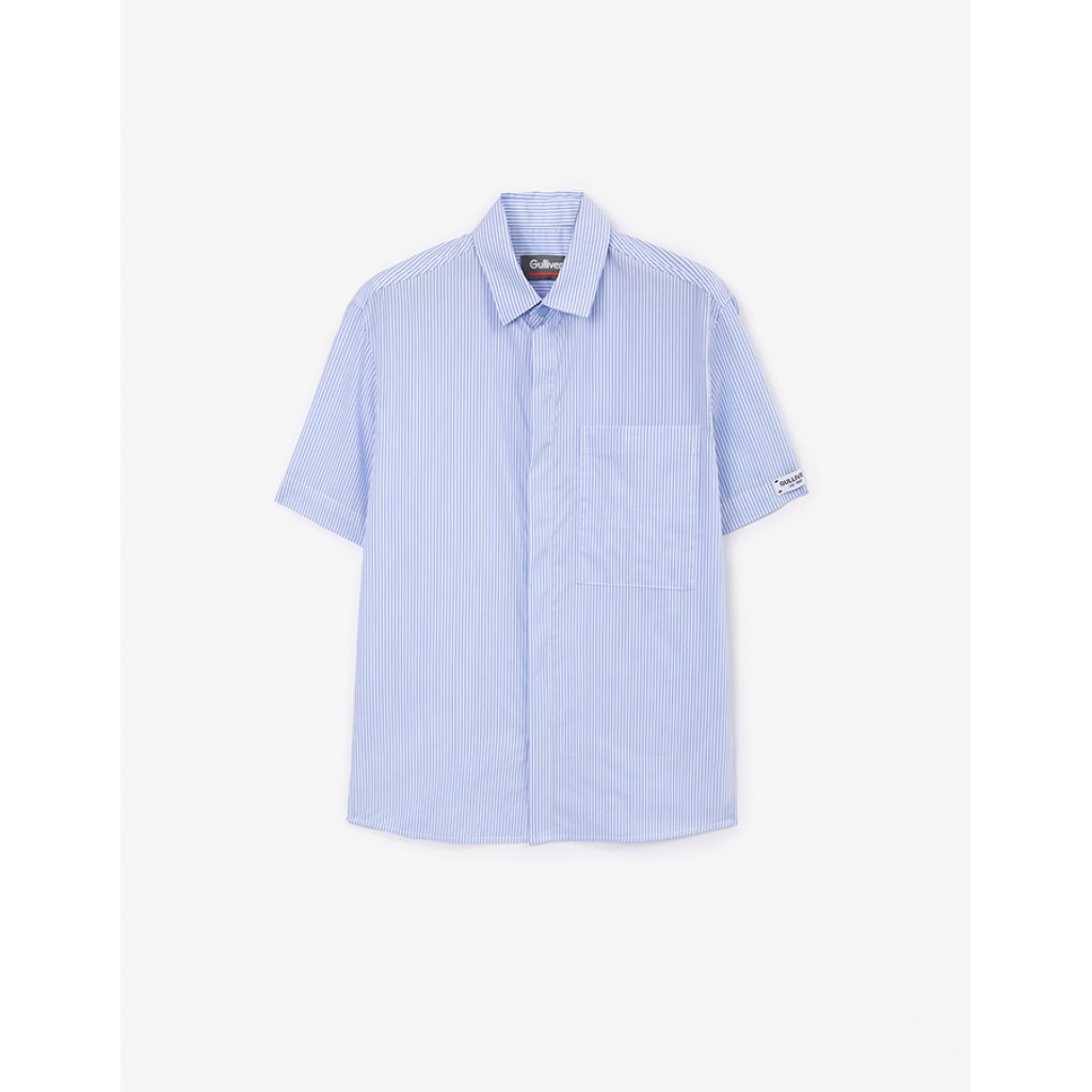 Голубая сорочка с коротким рукавом прямого комфортного силуэта(relaxed fit) – прекрасный вариант для школьного гардероба мальчика. Сорочка выполнена из хлопкового текстиля, очень приятного при тактильном контакте. Он гигроскопичен, обладает отличной воздухопроницаемостью, обеспечивая комфортную эксплуатацию изделия на протяжении всего дня. Супатная планка, скрывающая удобную застежку на кнопки, подчеркивает минималистичный дизайн модели, делают сорочку идеальной для школьных образов и не только.