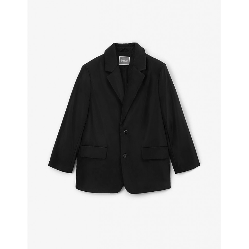 Утепленная черная куртка пиджачного кроя — стильный элемент гардероба мальчика, сочетающий элегантность классики и практичность плащевой верхней одежды. Пиджак на подкладке выполнен из матовой влагостойкой плащовки, на тонком утеплителе - синтепоне, что делает его отличным вариантом для межсезонья. Свободная форма обеспечивает комфортную эксплуатацию. Дизайн модели создан по всем правилам классической вещи. Английский воротник, шлица на спинке, однобортная застежка на две кнопки, имитирующие пуговицы, прорезные карманы с клапанами, шлицы на рукавах придают пиджаку шик и изысканность вещи с традициями. На спинке изделия размещен неконтрастный светоотражающий принт, способствующий безопасности мальчика в тёмное время суток.