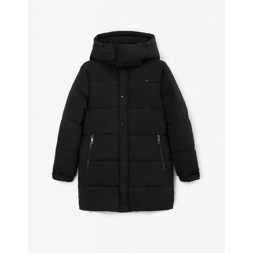 Черное стёганое пальто из матовой влагостойкой плащовки — прекрасное решение для строгого осеннего гардероба мальчика. Пальто выполнено из матовой влагостойкой плащовки на тонком утеплителе - искусственном пухе, что делает его практичным, износостойким, отлично подходящим для школьных будней. Пальто имеет глубокий съемный капюшон с высокой стойкой, создающей дополнительное препятствие от непогоды. Утяжки на капюшоне, ветрозащитная планка с застежкой на кнопки, манжеты на резинке с регулирующими объем запястья патами усиливают защитные свойства изделия. Вместительные карманы на металлических молниях в цвете темный никель создают удобство в эксплуатации вещи. Пальто застегивается на тракторную молнию. Черное стеганое пальто для мальчика оснащено внутренними лямками, позволяющими в помещении носить его за спиной как рюкзак, оставляя руки свободными. На спинке изделия размещен светоотражающий принт, способствующий безопасности мальчика в темное время суток.