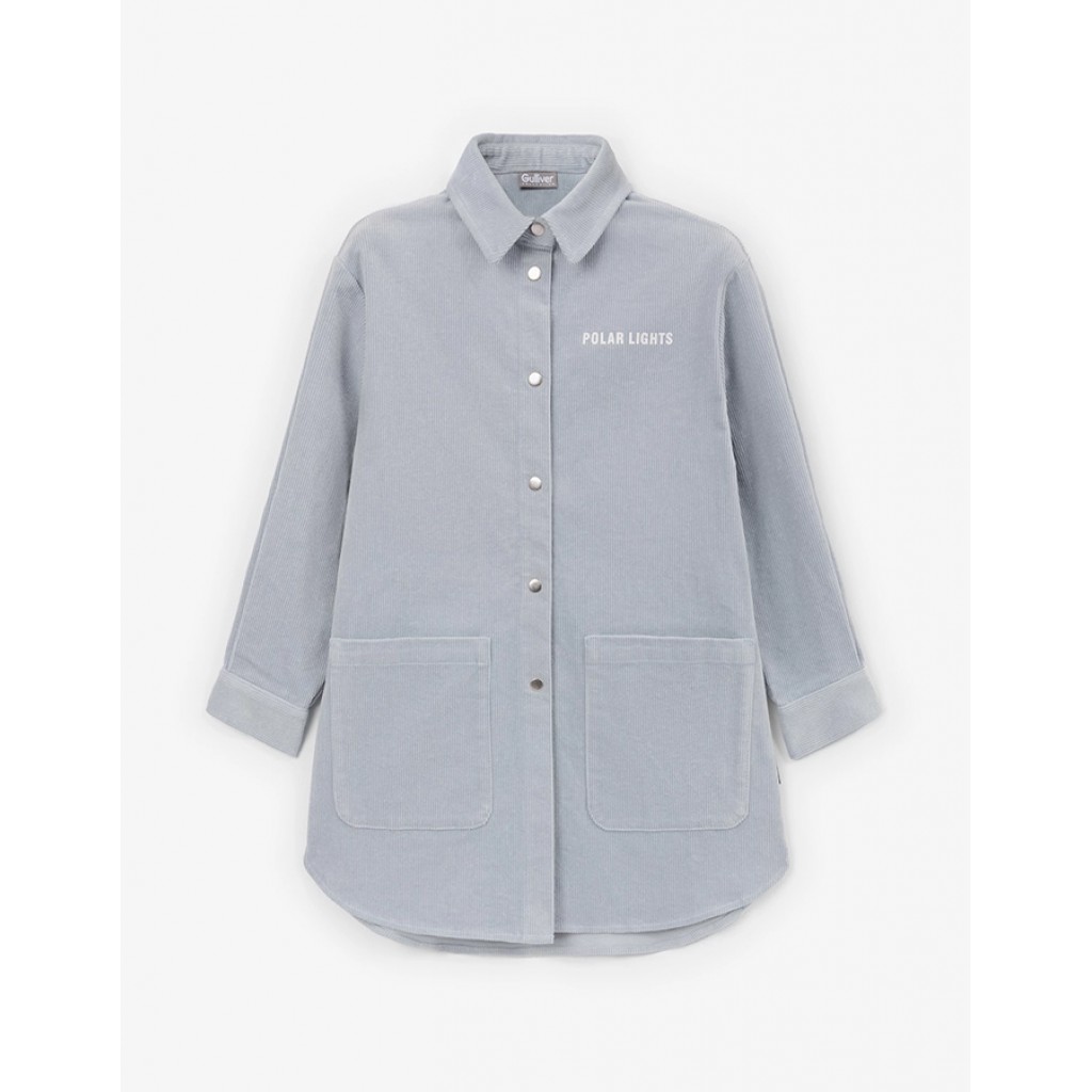 Прямое платье-рубашка с длинным рукавом, выполненное из мягкого микровельвета, - стильная, лаконичная и очень уютная вещь, необходимая девочке в осенне-зимний период. Платье имеет комфортную свободную форму с округлой линией низа. Изюминка модели - два объемных накладных кармана на передней части, в которые девочка может положить важные мелочи. В оформлении модели использованы вышивка и минималистичная нашивка с шрифтовым принтом. Платье застегивается на кнопки. Его можно носить как единичное изделие, а также нараспашку как второй слой, завершающий образ с джеггинсами, водолазкой, футболкой.