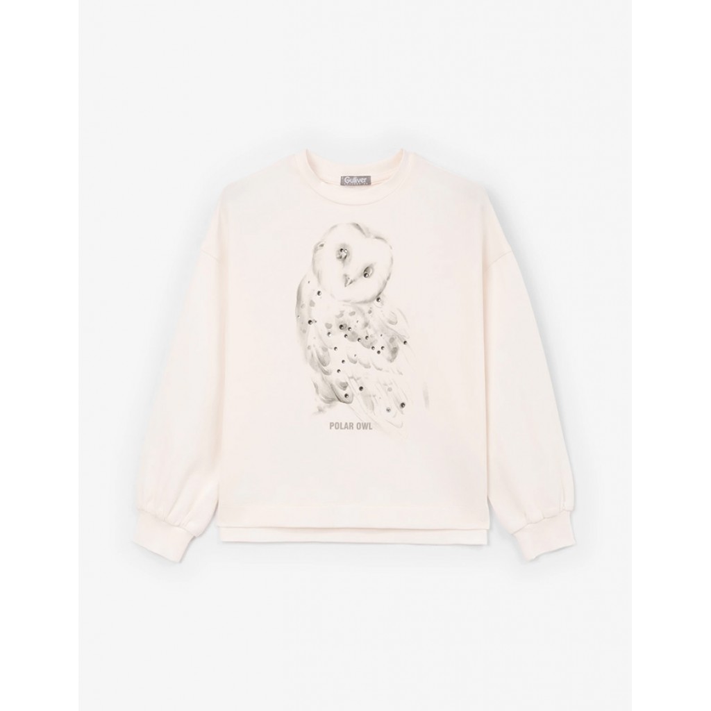 Лонгслив прямой свободной формы со спущенной линией плеч – стильная лаконичная вещь для формирования осеннего гардероба девочки. Лонгслив с заниженной линией спинки выполнен из мягкого хлопкового полотна с эластаном, очень приятного при тактильном контакте. Конструктивная особенность модели - свободные рукава, завершающиеся манжетами. Они придают лонгсливу нежность и женственность, выводя его за пределы базовых вариантов. На передней части изделия расположен крупный анималистичный принт со стразами, на спинке - небольшая кожаная нашивка. Неброский минималистичный дизайн, деликатное оформление, сочетающее интересную графику и благородное сияние, делают лонгслив для девочки прекрасным решением для создания образов и для праздников, и для будней.