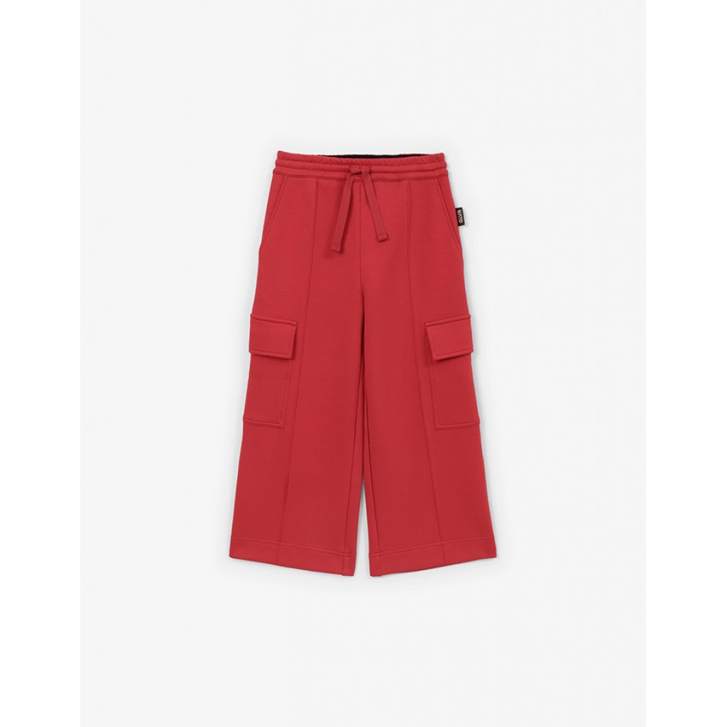 Красные широкие брюки с карманами-карго и застроченными стрелкам на передней части добавят красок в осенний гардероб девочки! Выполненные из мягкого, гладкого, формоустойчивого хлопкового интерлока, брюки с удобным поясом на резинке и кордами комфортны, практичны, просты в эксплуатации и уходе. Благодаря эластану в составе трикотажного полотна брюки обладают хорошей пластикой, обеспечивая свободу движений. Кроме вместительных карманов-карго, брюки имеют карманы со скосом.
