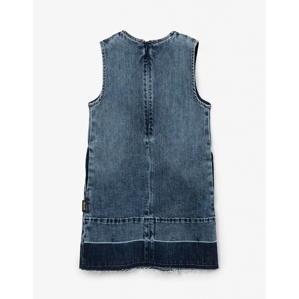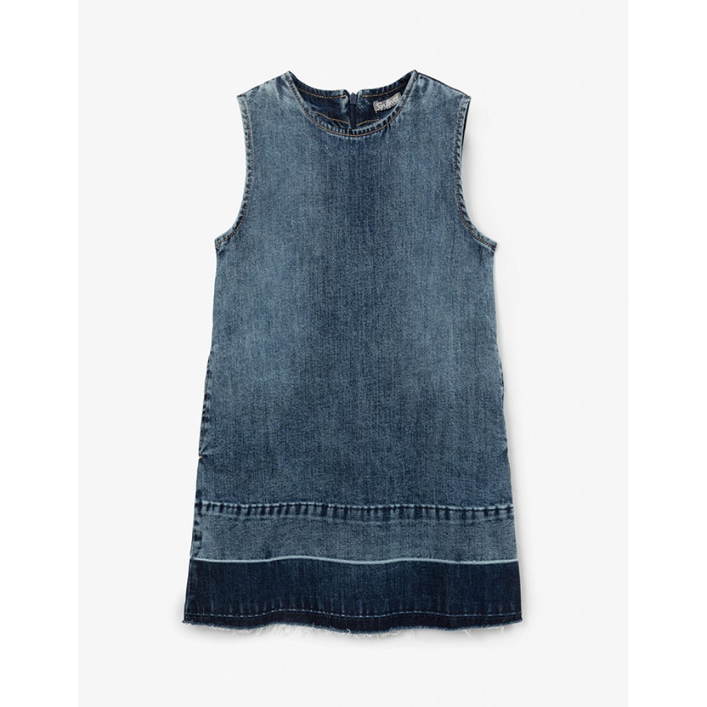 Синий джинсовый сарафан трапециевидной формы – стильное и практичное решение для создания многослойных осенних комплектов. Сарафан выполнен из мягкого пластичного денима на основе хлопка, обладающего гладкой, приятной на ощупь поверхностью, хорошей пластикой, высокой износостойкостью. Изюминка модели - открытый срез по нижнему краю, придающий сарафану черты модного гранжа. Сарафан имеет удобные карманы в боковых швах, застегивается на потайную молнию на спинке.