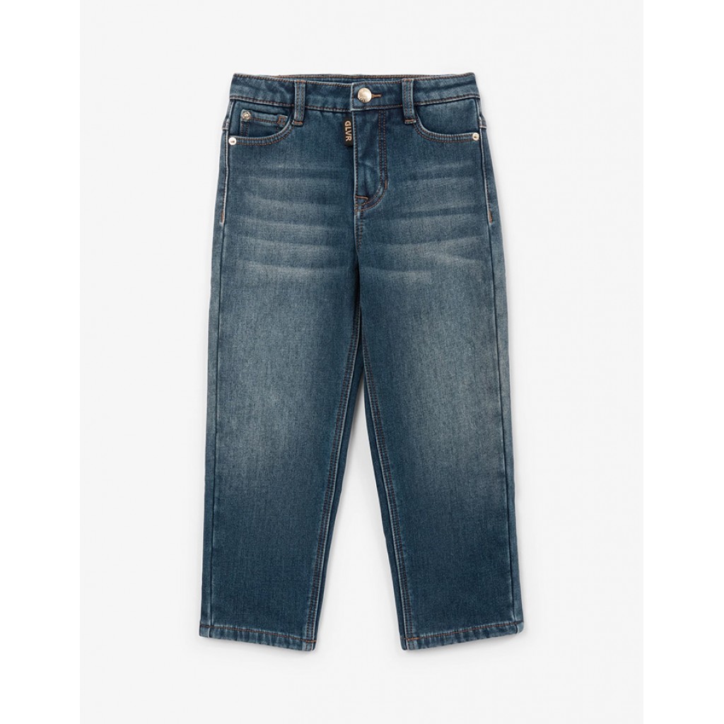 Прямые утепленные синие джинсы - основа осенне-зимнего прогулочного гардероба девочки. Мягкие, уютные, джинсы на флисе позволят девочке чувствовать себя комфортно в самые холодные и ненастные дни. Модная варка и потертости придают джинсам стильный современный вид. Джинсы застегиваются на молнию и крючок, имеют пять стандартных карманов.