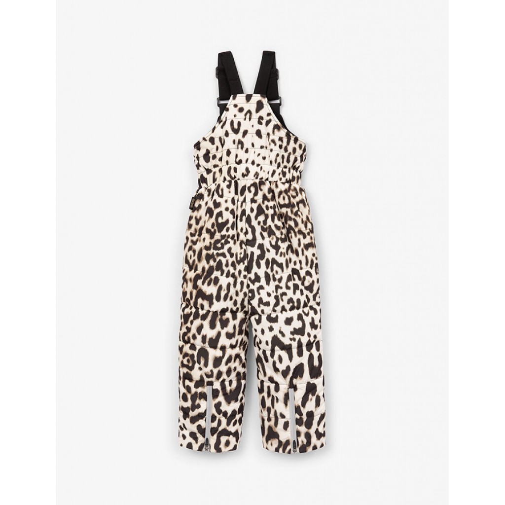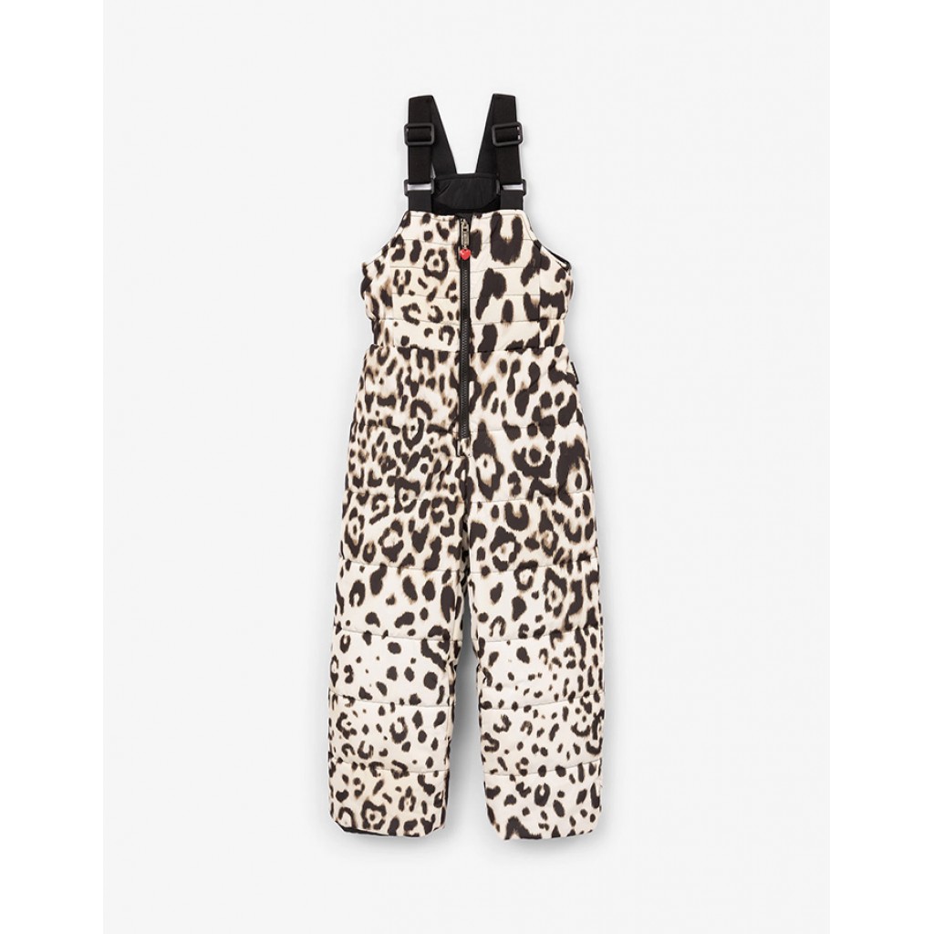 Утеплённый плащевой полукомбинезон — неотъемлемый атрибут практичного и функционального зимнего гардероба девочки. Леопардовый рисунок делает полукомбинезон стильным, женственным, интересным, выделяя его из ряда однотонных аналогов. Влагостойкая плащовка прекрасно защищает от холода и ветра. Флисовая подкладка удерживает тепло и способствует мягкости, уюту, комфорту в повседневной эксплуатации. Эластичные лямки позволяют регулировать посадку в зависимости от роста ребенка. Защитные манжеты препятствуют попаданию снега внутрь. Литые молнии со светоотражающими элементами в нижней части брюк позволяют корректировать объём изделия внизу и способствуют безопасности девочки в тёмное время суток. Полукомбинезон застёгивается на молнию, дополненную акцентным пуллером-сердечком.