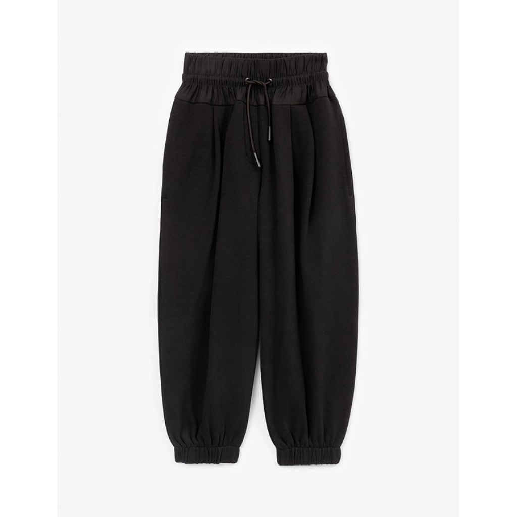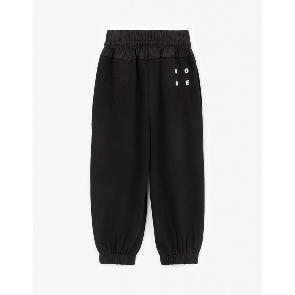 Черные брюки-джоггеры прекрасно впишутся в современные осенние образы, а также станут отличной альтернативой джинсам. Брюки выполнены из мягкого, дышащего, приятного тактильно футера с преимущественным содержанием хлопка. Пояс брюк из хлопкового текстиля на эластичной тесьме с кордами, придает практичной базовой вещи акцентную игру фактур. Брюки имеют два боковых кармана, на задней части оформлены лаконичным шрифтовым принтом.
